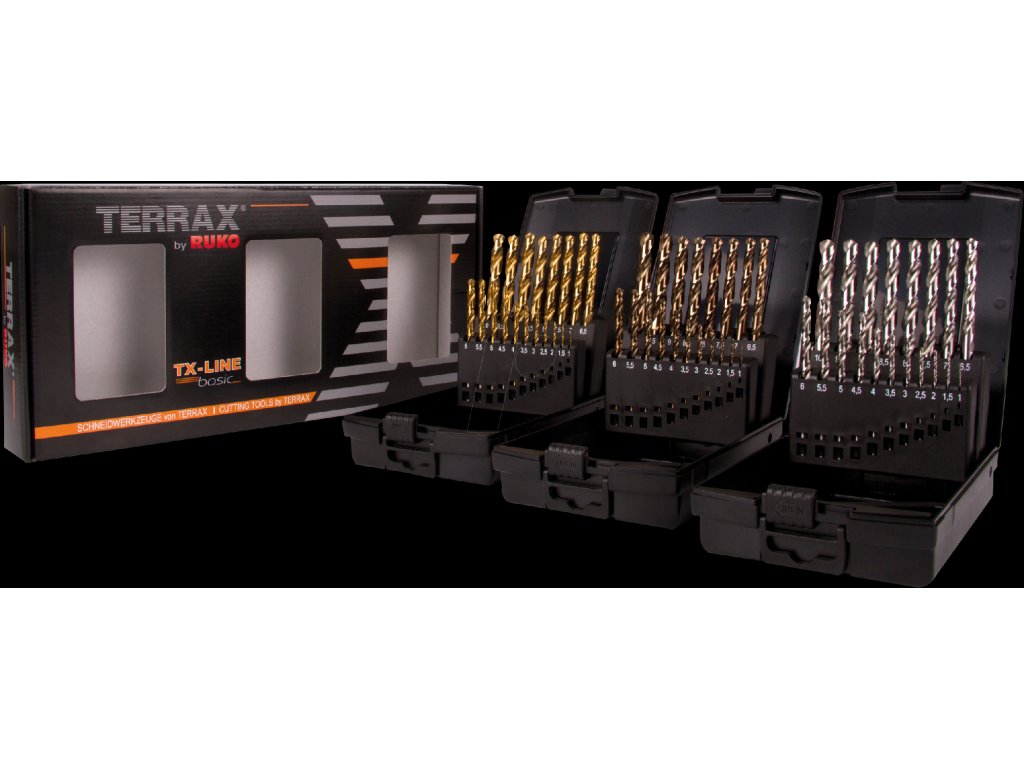 Sada špirálových vrtákov TERRAX, 57 dielna (HSSG,HSSG TiN, HSSE Co5)