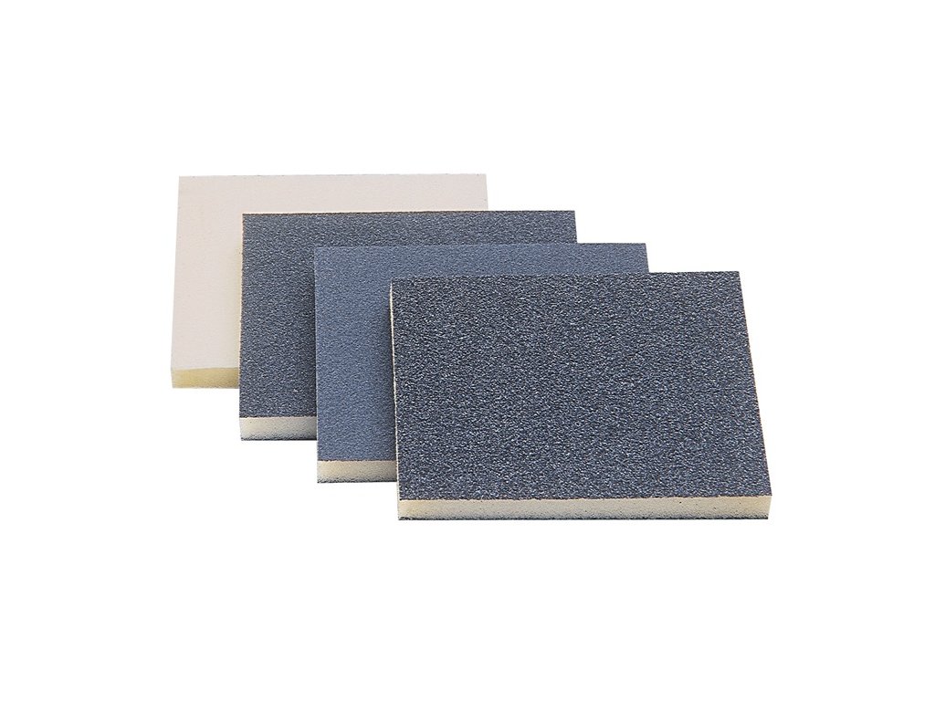 obojstranne potiahnutá - na penovej podložke, ktorá sa prispôsobí obrobku - špeciálny tvar uľahčuje prácu na ťažko prístupných miestach, ako sú profily, hrany, rohy a krivky - vhodná na brúsenie dreva, medzibrusovanie lakom, brúsenie plastov, kovov a mnoho ďalšieho.Dodatočné parametre