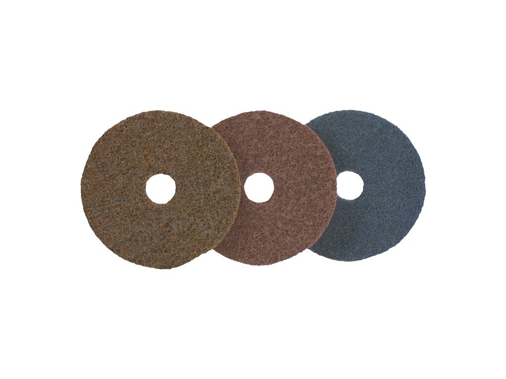 Kotúč z netkanej textílie SCD - syntetické nylonové rúno rovnomerne popretkávané korundovými brúsnymi zrnami - plne syntetická živica - vodotesný, ideálny okrem iného na opracovanie nehrdzavejúcej ocele - znižuje vibrácie o cca 50 % - preddierovaný otvor Ø 22,23 mm - upevnený suchým zipsomDodatočné parametre