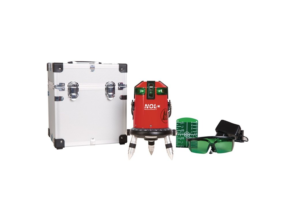 Všetky čiary so zeleným laserovým lúčom, olovnica s červeným laserovým lúčom (4 prepínateľné zvislé čiary a olovnica) - Motorizovaná samonivelizácia (možno vypnúť) - Všestranné použitie vďaka 360° horizontálnej čiare v spojení s presne kolmými zvislými rovinami - Pracovná teplota -10 °C až +40 °C - Pripojenie 5/8", jemný bočný pohon, nastaviteľné skrutky na nohe - Vhodné na použitie s prijímačomDodatočné parametre
