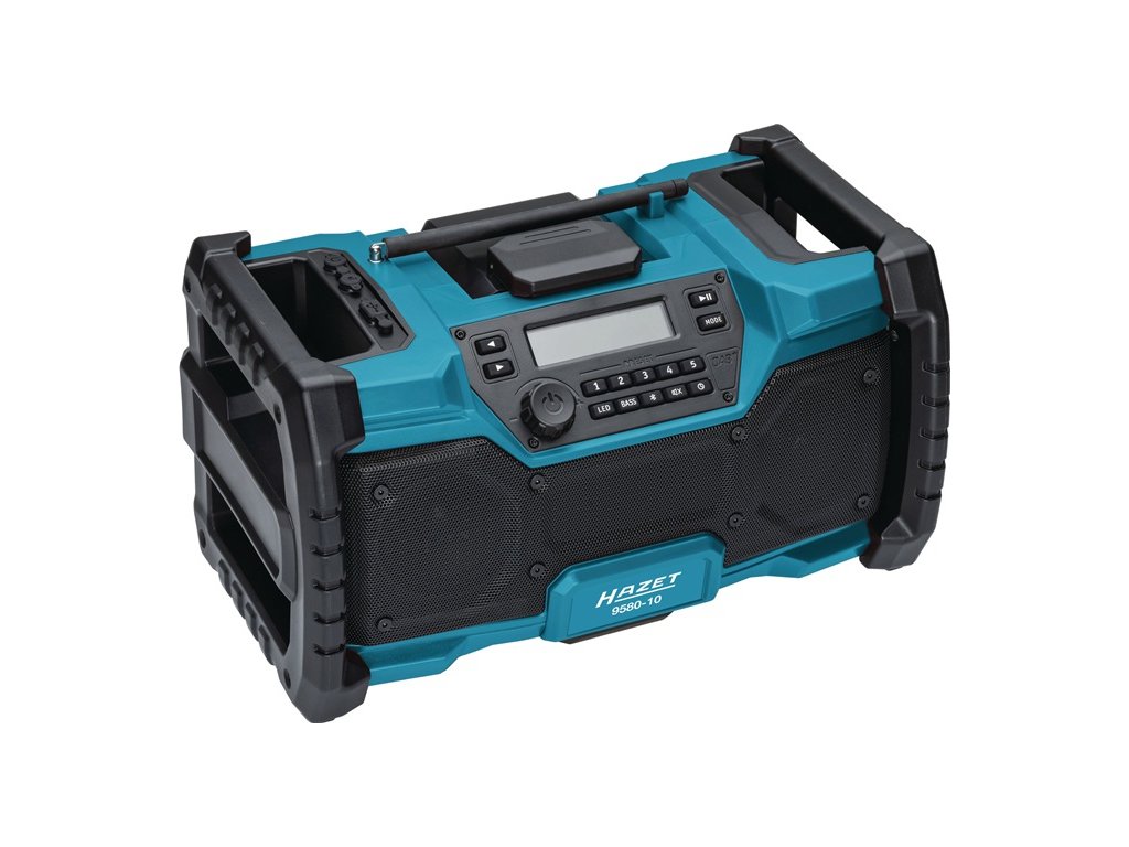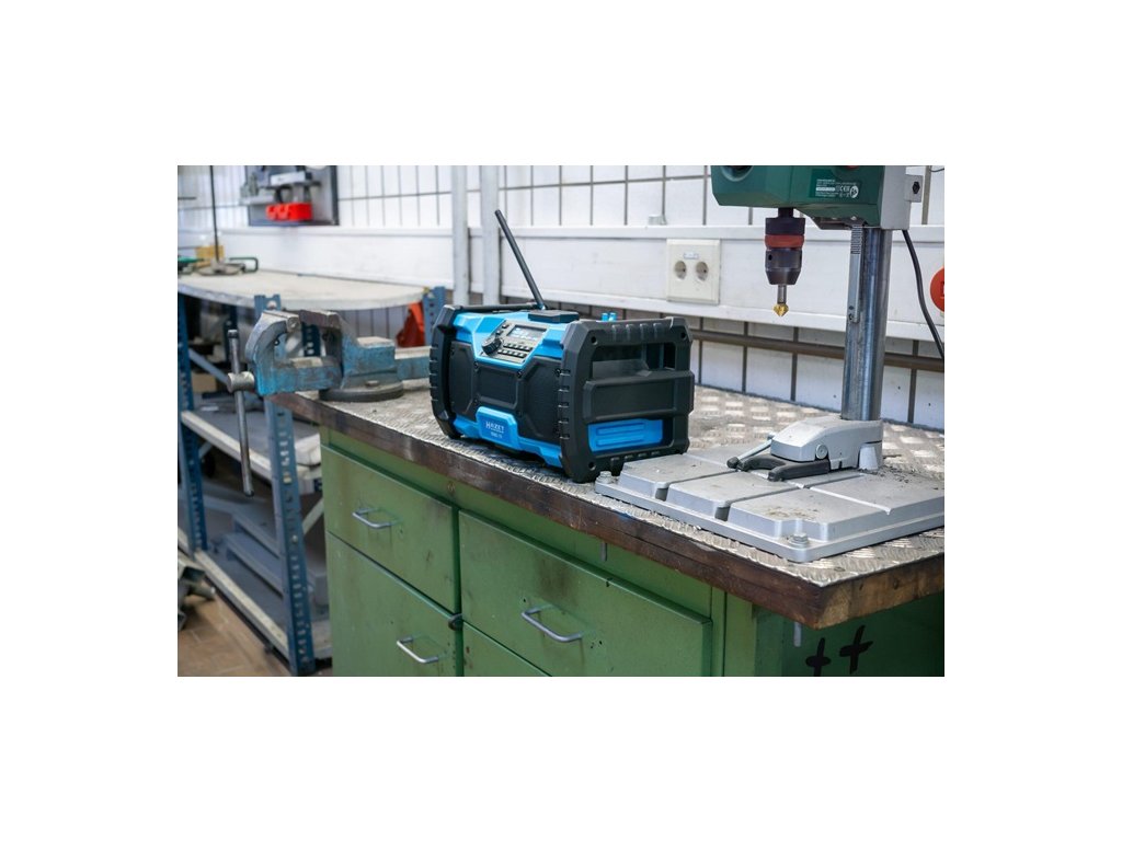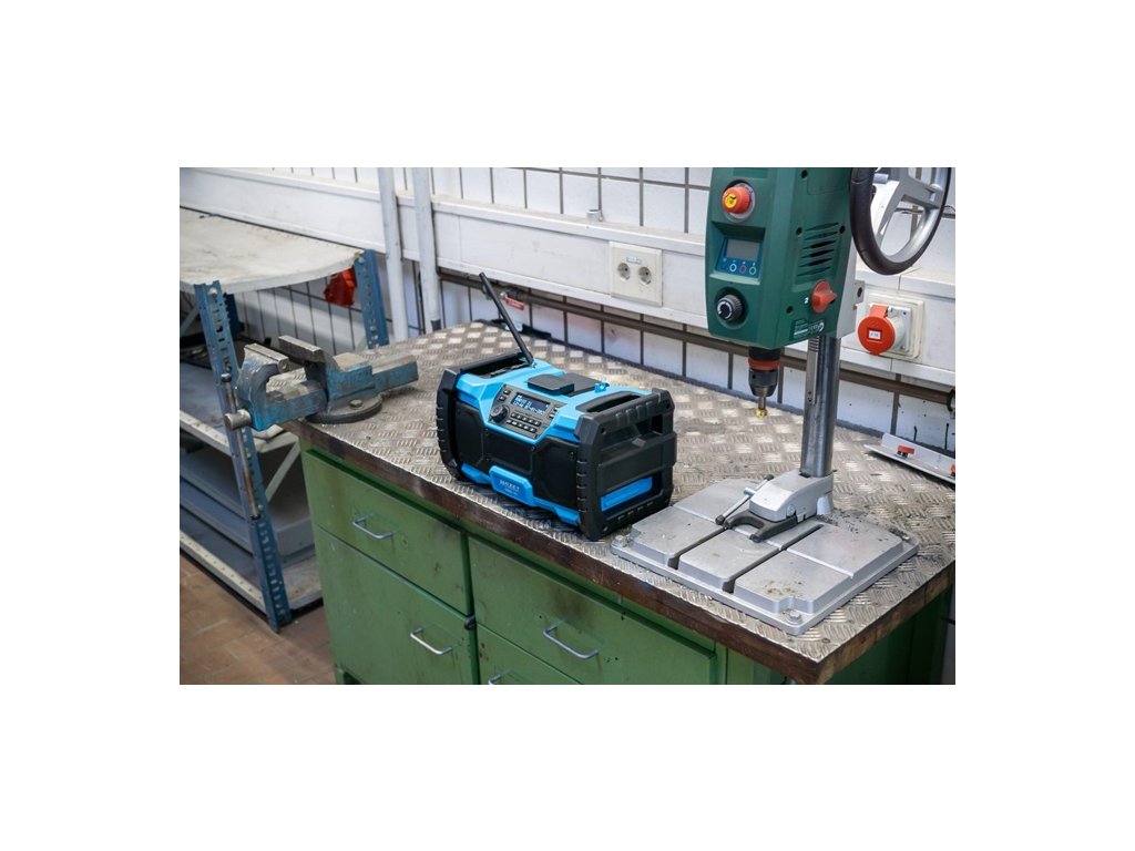 Bluetooth ∙ hybridný 18 V a 230 V - so sieťovým adaptérom - robustné rádio na príjem DAB+ (174,928 - 239,200 MHz) a FM (87,5 - 108 MHz) - výkon reproduktora 2x 10 W a zosilnenie basov pre špičkovú kvalitu zvuku - podsvietený LCD displej ∙ farebný LED svetelný pásik ∙ digitálne hodiny ∙ výsuvná flexibilná anténa - Bluetooth® ∙ Aux vstup ∙ USB pripojenie ∙ možnosť nabíjania smartfónov, automatické vyhľadávanie staníc a 5 predvolieb programov - funkcia stlmenia zvuku - LED indikátor kapacity batérie na akumulátore - kompatibilný so všetkými 18 V akumulátormi radu 9500 - rozmery: 369 mm x 212 mm x 201 mmDodatočné parametre