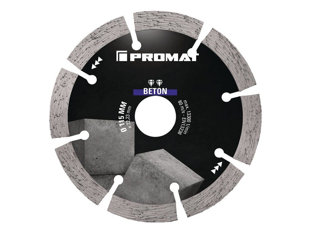 Druh produktu: Diamantový rezný kotúč, Hlavné vlastnosti: Ø 115 mm Otvor 22,23 mm, Materiál nástroja: Šírka segmentu 34,5 mm