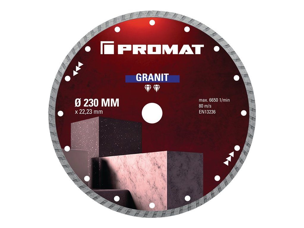 Univerzálny diamantový rezný kotúč so 7 mm turbo diamantovým segmentom na použitie na: žula, prírodný kameň, železobetón, stavebné materiály, strešné škridly, vápenno-pieskové tehly, mramor, murivo, Poroton, bridlica, kompozitný kameň - možno použiť za sucha aj za mokraDodatočné parametre