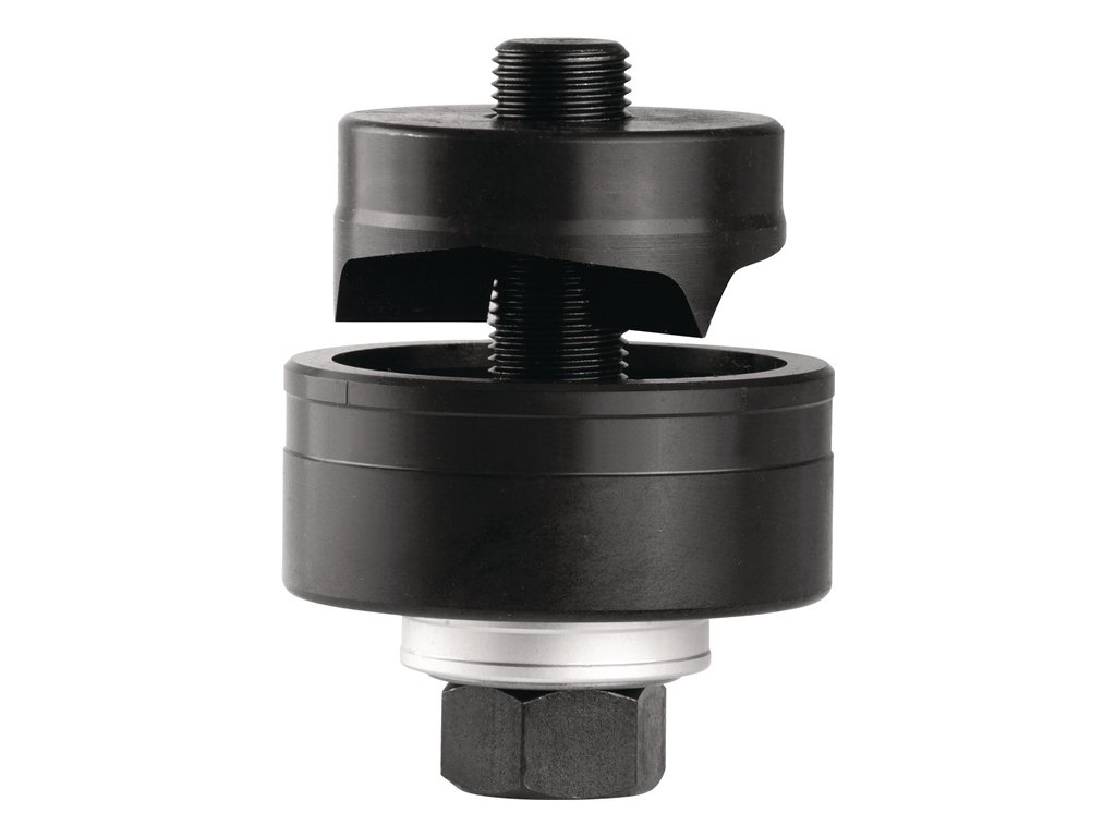Delená dierovačka na plech - na rýchle dierovanie kruhových otvorov bez otrepov do oceľového plechu S235 - hrúbka materiálu do 3 mm - na káblové vývodky s PG a metrickým závitom a sanitárne armatúry - vďaka 3-násobnému deleniu nedochádza k zasekávaniu odpadového kusu v matrici - ťažná skrutka s jemným závitom UNF - ovládanie ťažnej skrutky pomocou kľúča - ideálne pre výrobcov rozvádzačov, elektrikárov, inštalatérov, priemysel a obchod - dierovanie tenkostenných materiálov rýchlo, bez námahy, čisto a bez otrepov v niekoľkých jednoduchých krokochDodatočné parametre