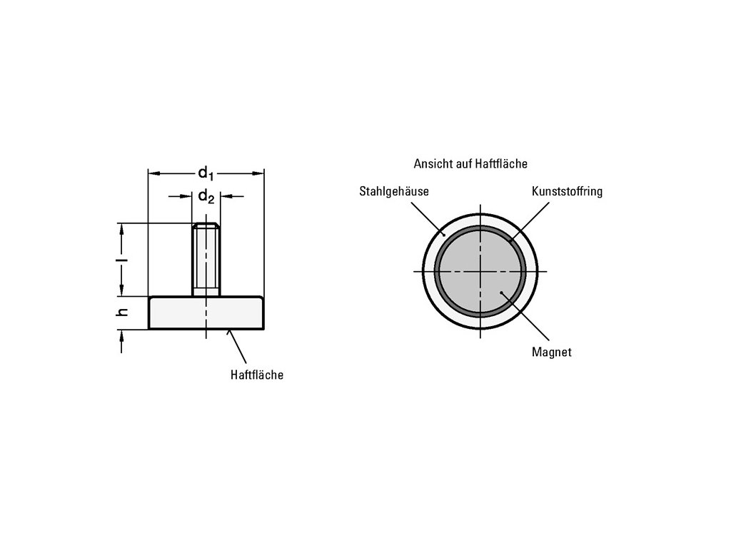 Farba: d1 32 ± 0,1 mm, Veľkosť: d2 M 6 mm Neodým, železo, bór ND
