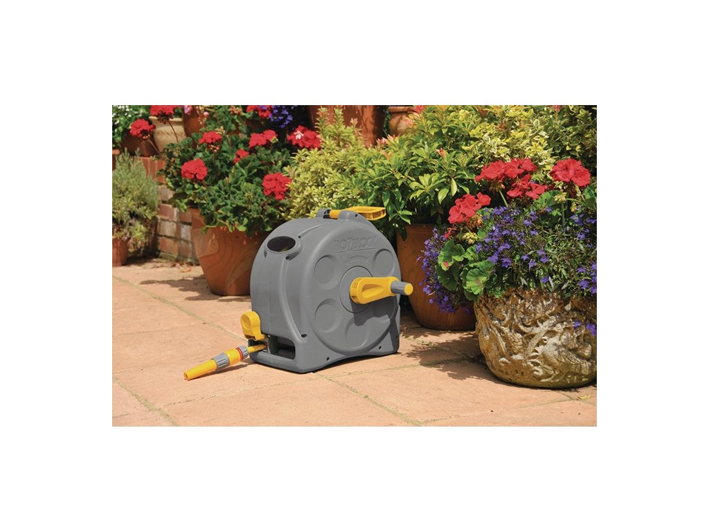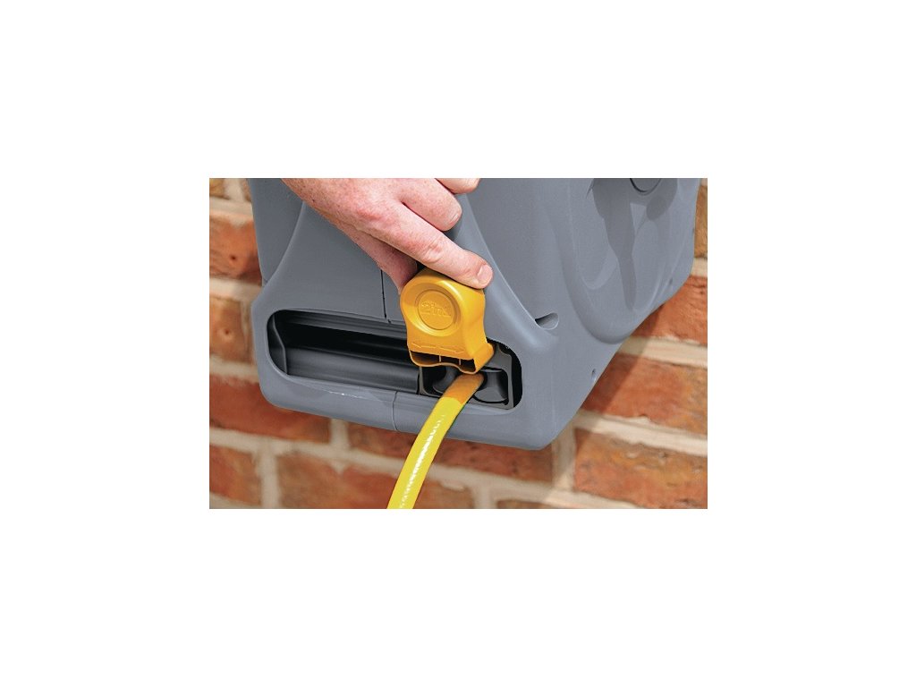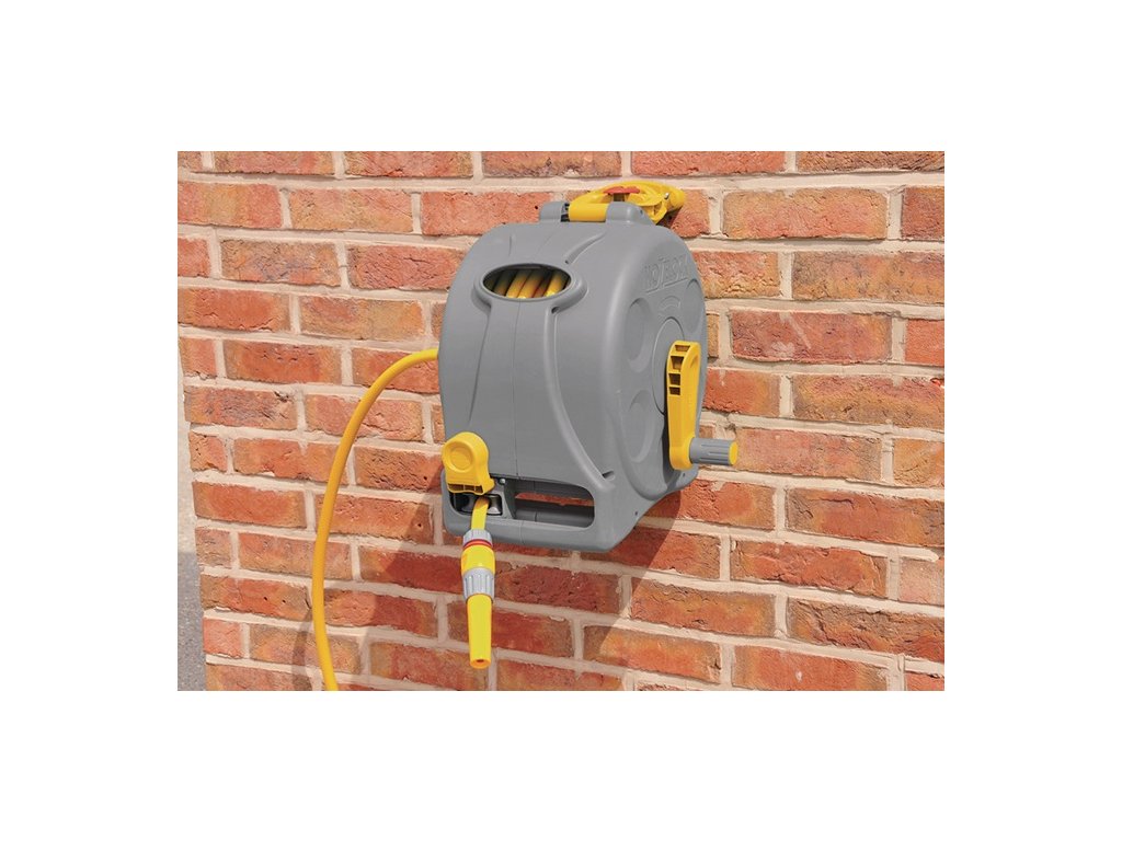 kompaktný box na hadicu s robustným krytom, vhodný na montáž na stenu alebo na mobilné, prenosné použitie - kľukové držadlo s plynulým chodom - jednoduché navíjanie a odvíjanie - držadlo možno pripevniť na ľavú alebo pravú stranuDodatočné parametre