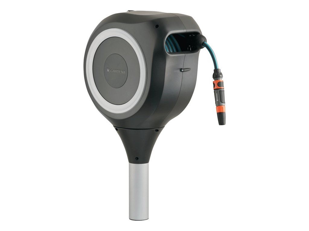 s flexibilnou pripojovacou hadicou, systémovými dielmi a čistiacim postrekovačom, s 2 možnosťami postrekovacích trysiek - s kovovým stojanom/zemným hrotom, pomocou montážnej tyče sa otočí do trávnika a na ňom je namontovaný hadicový bubon - otočný o 360° - s aretačnými dorazmi - technológia RollControl - odolný voči UV žiareniu a mrazu - výška hadicového boxu je prispôsobená robotickým kosačkám GARDENADodatočné parametre