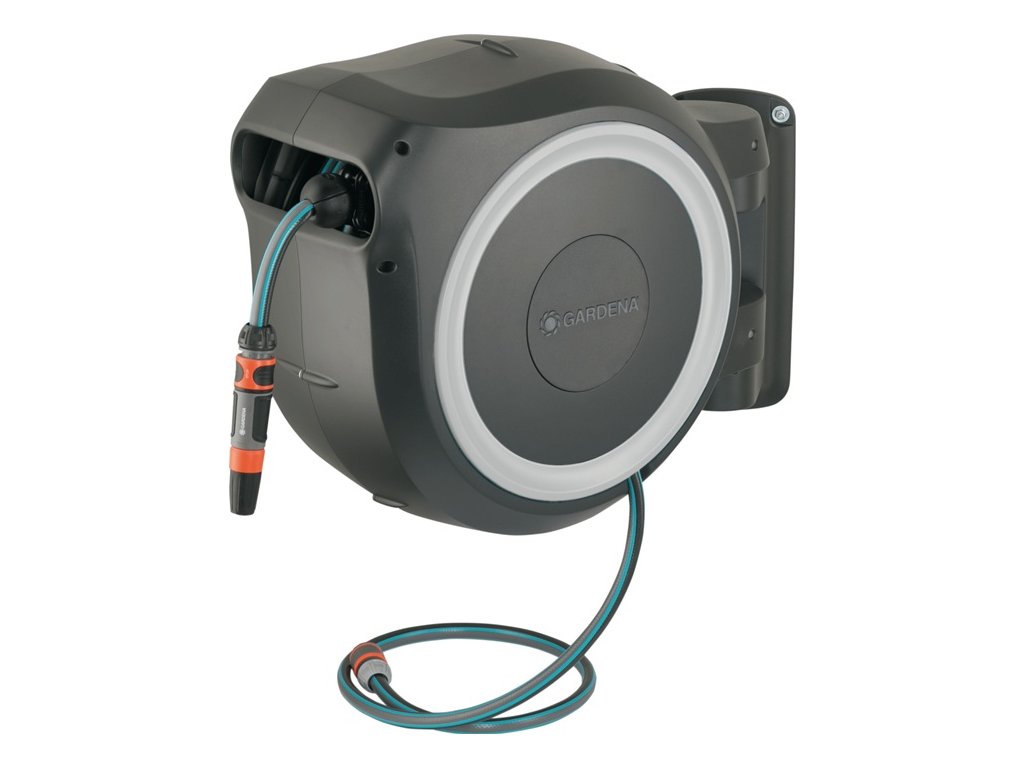s pripojovacou hadicou, systémovými dielmi a čistiacim sprejom, s 2 možnosťami postreku - vrátane nástenného držiaka so skrutkami, hmoždinkami a montážnou pomôckou - upevňuje sa na stenu domu pomocou držiaka otočného o 180° - s aretáciou - technológia RollControl - odolný proti UV žiareniu a mrazu - ochrana proti krádežiDodatočné parametre