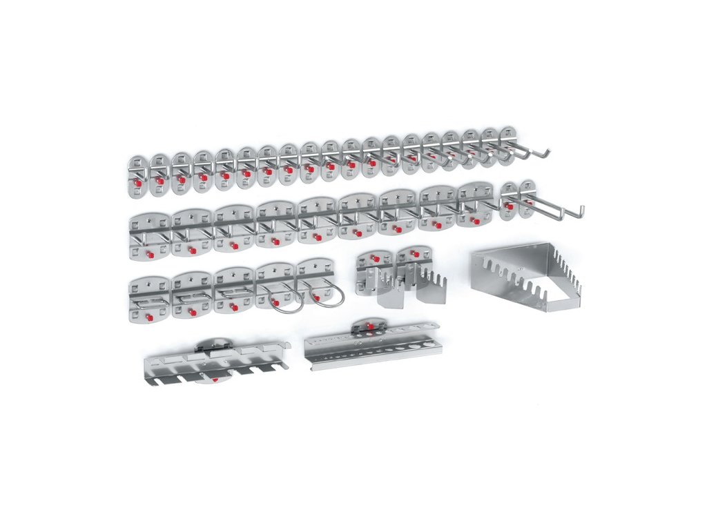 40 kusovRozsah dodávky: 9 držiakov nástrojov s uhlovým koncom, 12 držiakov nástrojov s vertikálnym koncom, 9 dvojitých držiakov nástrojov, 3 držiaky klieští, 2 držiaky strojov, 1 držiak kľúčov, 1 držiak skrutkovačov, 1 držiak vŕtačiek, 2 držiaky píl