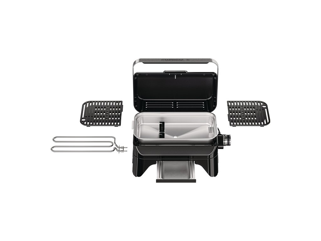 prenosný čierny stolový gril - na zábavu pri grilovaní vnútri aj vonku - rovnomerné rozloženie tepla počas grilovania vďaka elektrickému vykurovaciemu systému Campingaz® - rovnomerné rozloženie tepla - teplomer integrovaný vo veku - systém InstaClean: odnímateľná grilovacia miska a miska na odkvapkávanie tuku, ktoré možno spolu s grilovacím roštom umývať v umývačke riadu - protišmykové silikónové nožičky a integrované rukoväte na ľahšiu prepravu - výkon 2 kW - rozmery 59 x 47 x 61 cm - hmotnosť 14 kg - grilovacia plocha 1200 cm² - predmontované - 10 rokov záruka na vekoDodatočné parametre