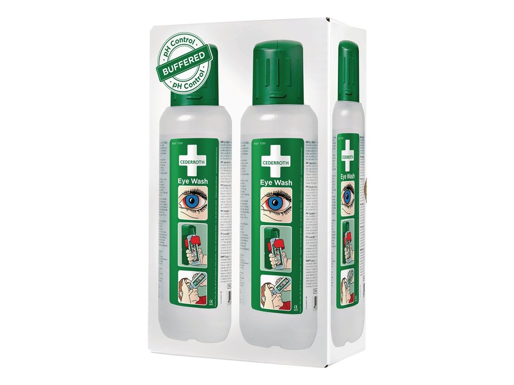 Obsah 2x 0,5 l roztoku na výplach očí 2 v 1 - Náplňové fľaše pre stanicu na výplach očí (4000 386 480) a nástenný držiak (4000 386 482) - sterilný izotonický pufrovaný fyziologický roztok bez konzervačných látok - pufrovaný roztok na výplach očí nielen riedi, ale aj vyplavuje nebezpečné látky z oka, účinok je silnejší pri zásadách ako pri kyselinách - praktická fľaša s ergonomickým očným pohárikom a veľkým množstvom výplachovej kvapaliny - viečko slúži ako ochrana očného pohárika pred prachom a ako zámok v stanici alebo nástennom držiaku - pootočením viečka sa fľaša otvorí vo vopred určenom bode zlomu a je pripravená na použitieDodatočné parametre