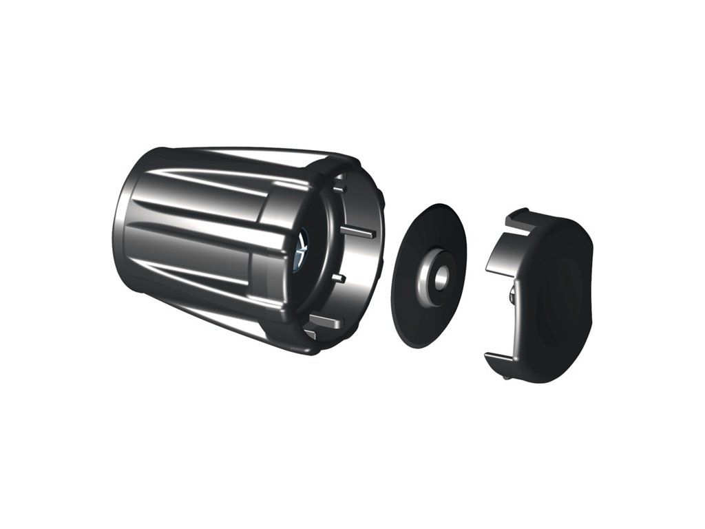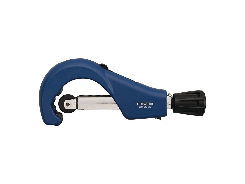 na rezanie plastových rúr - telo z hliníkového tlakového odliatku - vozík a otočný gombík z tlakového odliatku zinku - s 2 reznými kotúčmi - 1 namontovaný + 1 náhradný rezný kotúč v kryte otočného gombíka - so systémom ICS - výmena rezného kotúča bez použitia náradia - so 4 vodiacimi valčekmi - s rýchloposuvom - integrovaný odihlovací nôž NOGA - možno úplne vytiahnuť - ergonomický otočný gombík - rezný kotúč z ocele DIN 42CrM04, čierny, Ø 30 mm - práškovo lakovanýDodatočné parametre