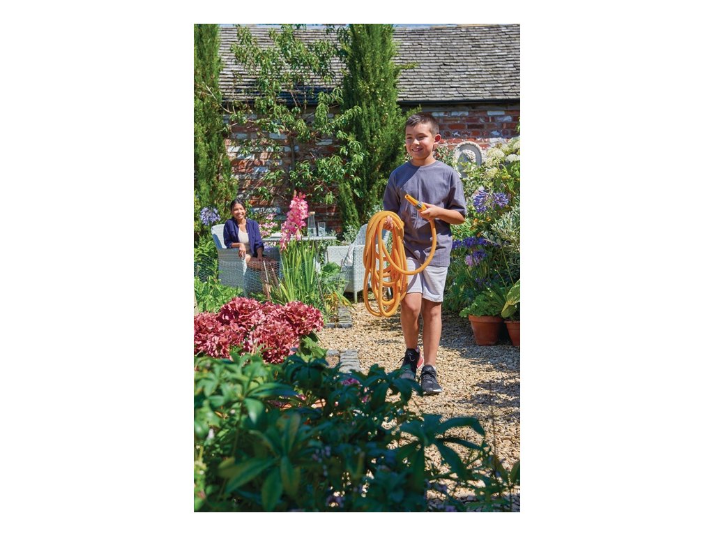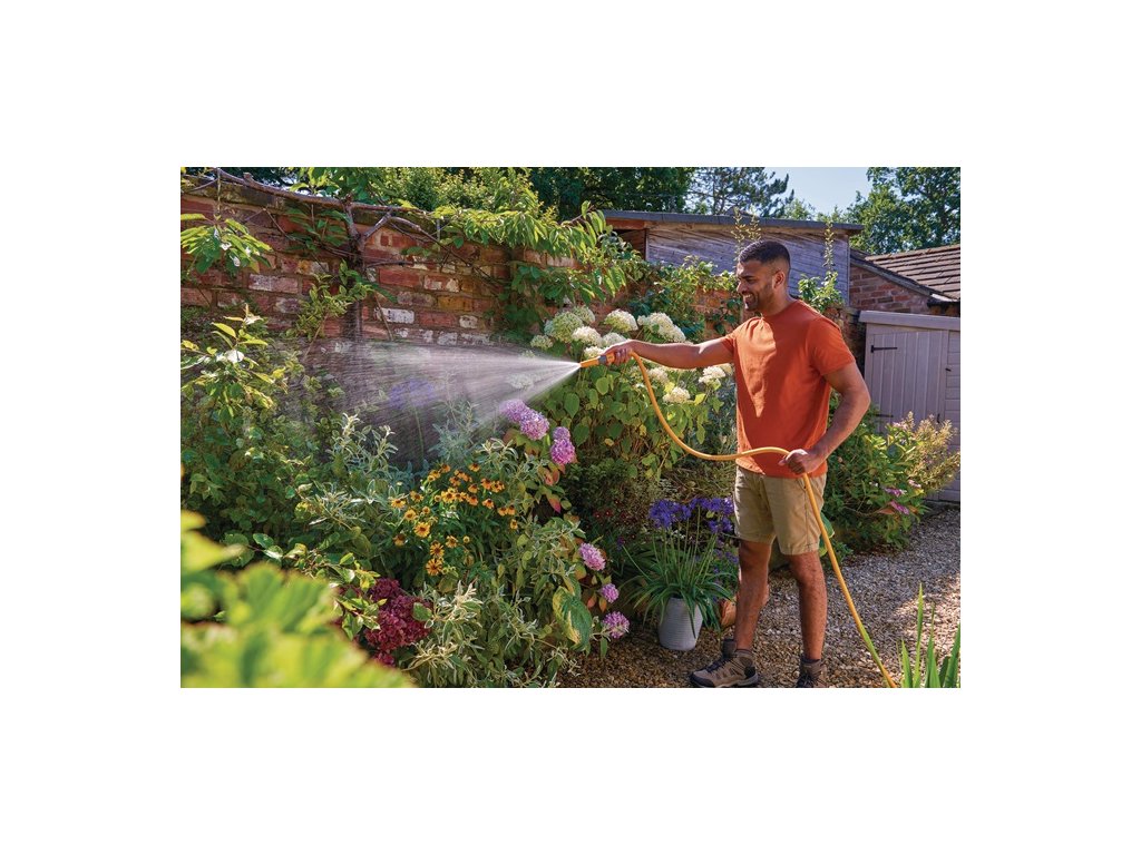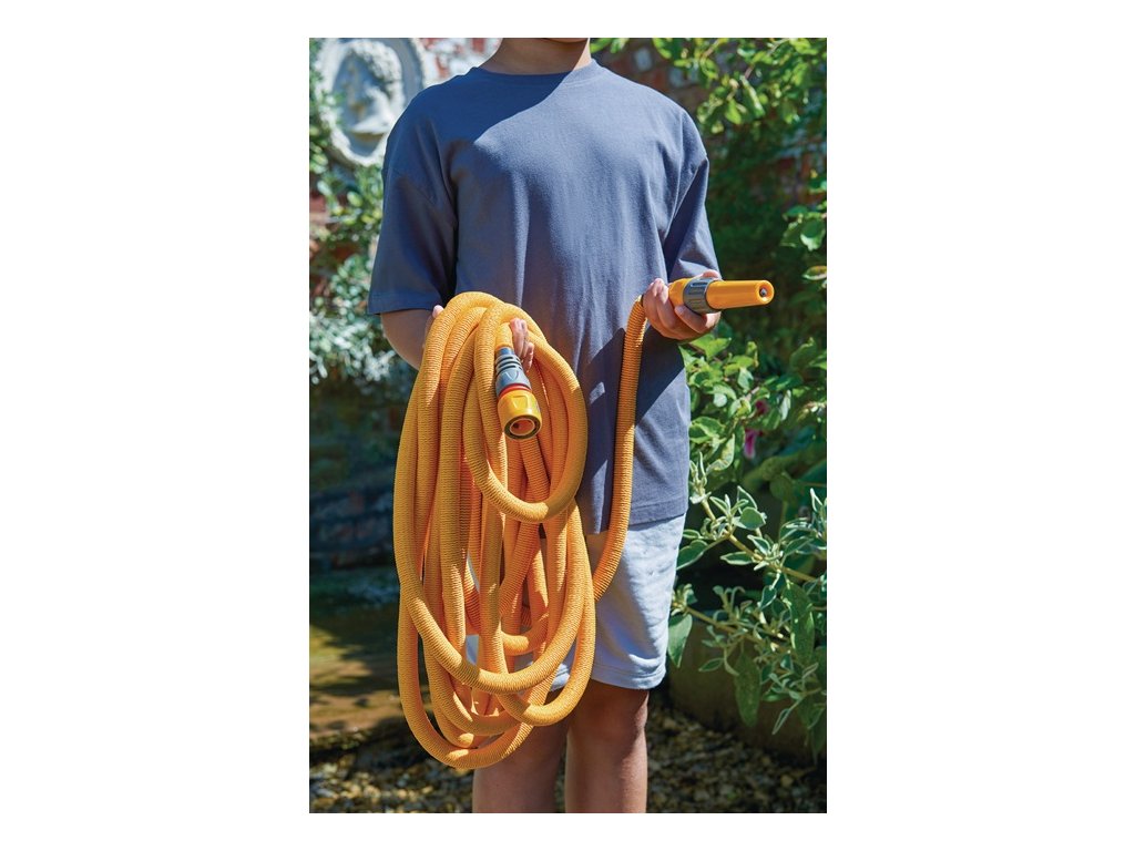 pod tlakom vody sa roztiahne na 3-násobok svojej pôvodnej dĺžky a potom sa zasunie späť na pôvodnú dĺžku, čím sa šetrí miesto pri skladovaní - ľahká hadica s odolným krytom hadice z textilnej polyesterovej tkaninyObsah: 2x Aquastopp , 1x plynulo nastaviteľná tryska, 1x prípojka na vodovodný kohútik 19 mm/13 mm