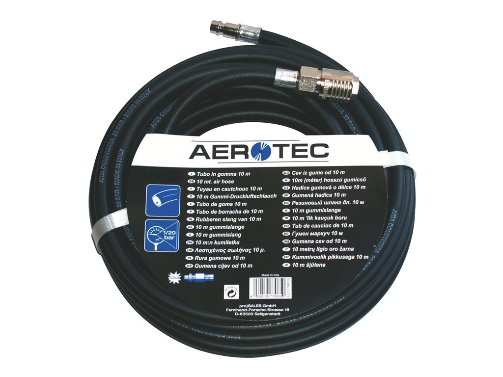 v gumovej kvalite so štandardnou rýchlospojkou SK vhodnou pre všetky kompresory a náradie - veľmi pružná - odolná voči oleju - antistatická - bez silikónuDodatočné parametre