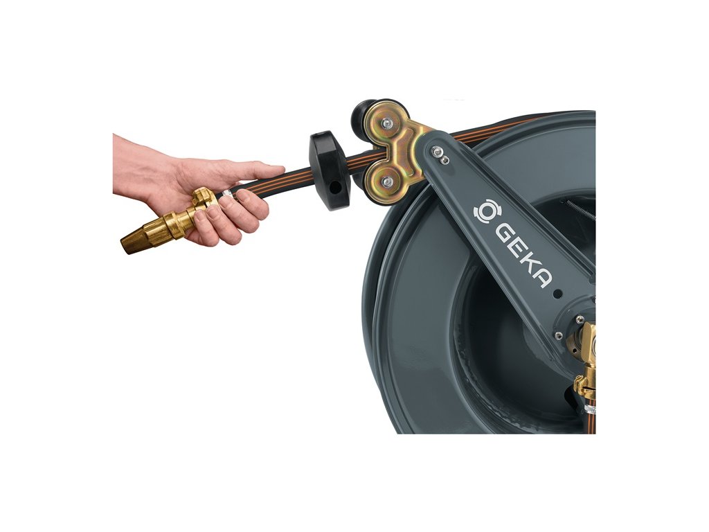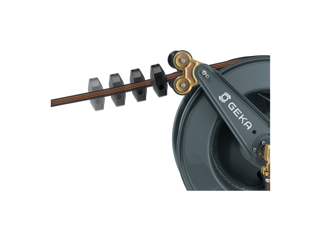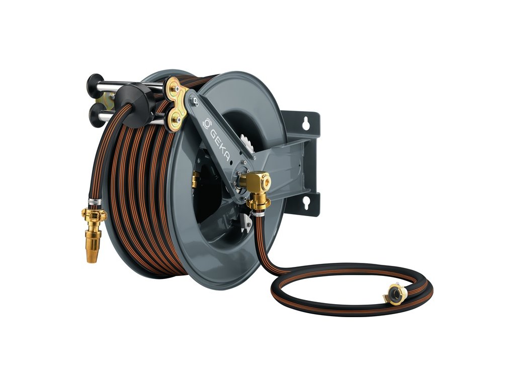 Automatický hadicový bubon GEKA® plus - práškovo lakovaná oceľová konštrukcia - automatické navíjanie hadice - na montáž na stenu, podlahu a strop - kompletne zmontovaný a pripravený na okamžité použitie - otočný nástenný držiak je k dispozícii samostatneMateriál: Puzdro: práškovo lakovaná oceľ