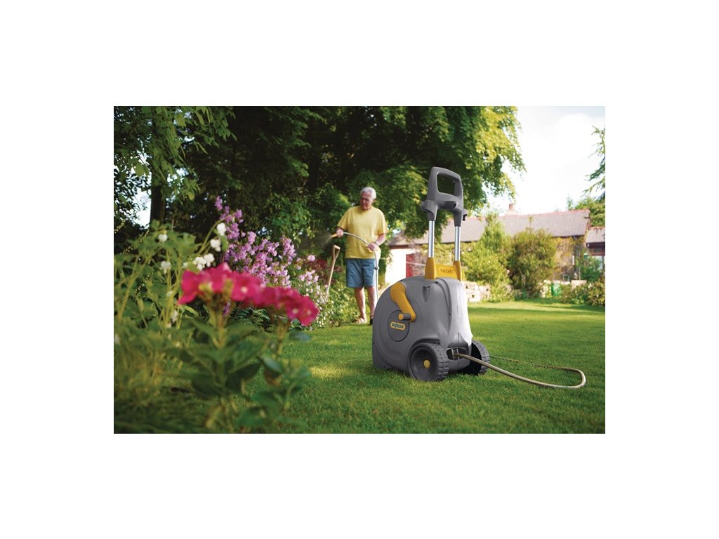 stabilný a ľahko prepraviteľný hadicový vozík s uzavretým boxom na hadicu - jednoduché, čisté a prehľadné navíjanie hadice vďaka inovatívnemu systému navíjania "Easy Rewind" s automatickým vedením hadiceDodatočné parametre
