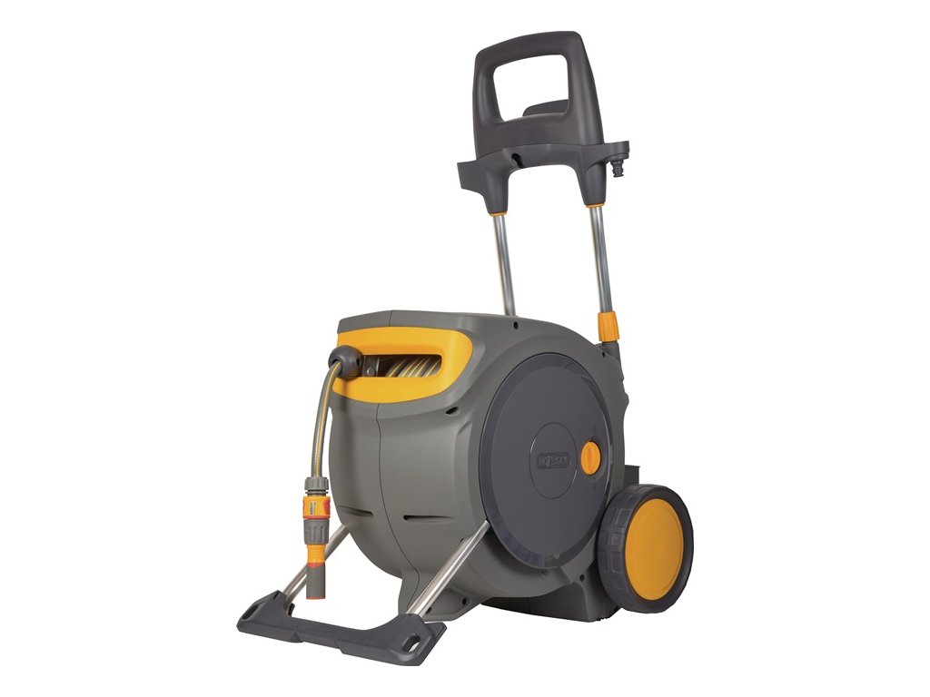 nový hybridný hadicový systém s automatickým navíjaním hadice a optimálnou manévrovateľnosťou bez montáže na stenu - predný stojan sa na stabilizáciu rozkladá a potom sa dá zložiť späť na jednoduché uskladnenie - štartovacia súprava (mäkké dotykové spojky) a záhradný postrekovač PLUS 3 v 1Dodatočné parametre