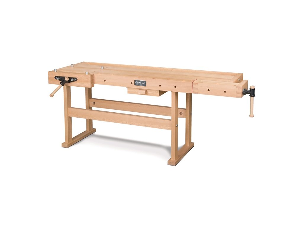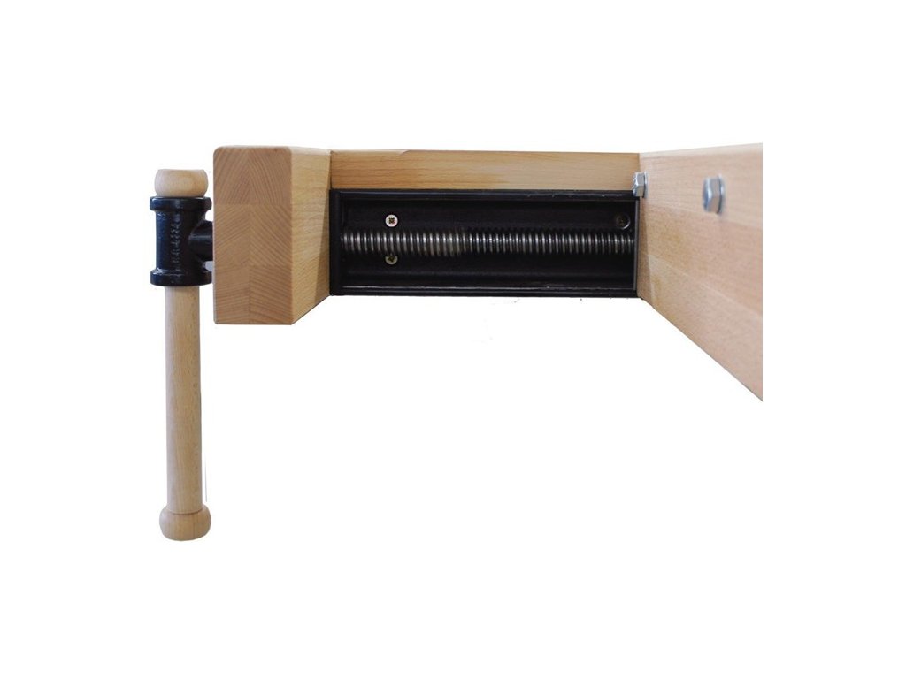 Profesionálny dizajn - precízne a starostlivé spracovanie - vyrobená kompletne z pareného, masívneho medeného bukového dreva - všetky dôležité hrany zaoblené - povrchy naolejované ekologickým spôsobom - sériovo so zásuvkou na náradie - 2 valcové tyče upínačov vedené presne a stabilne v liatom diele - s hladko sa pohybujúcim vretenom s lichobežníkovým závitom - s francúzskym predným upínačom a nemeckým zadným upínačom s lineárnym vedením - prstové spojenie v zadnom upínači a opierke nakladačaDodatočné parametre