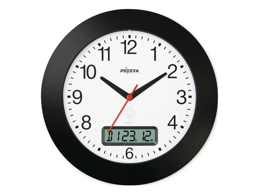 Farba: Rádiom riadené hodiny z čierneho plastu, Veľkosť: Ø 300 mm Čísla