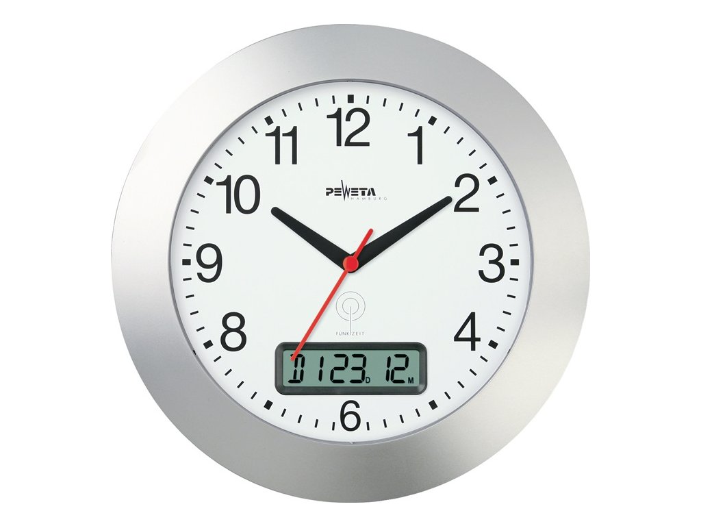 Farba: Rádiom riadené hodiny plast matná strieborná, Veľkosť: Ø 300 mm Čísla