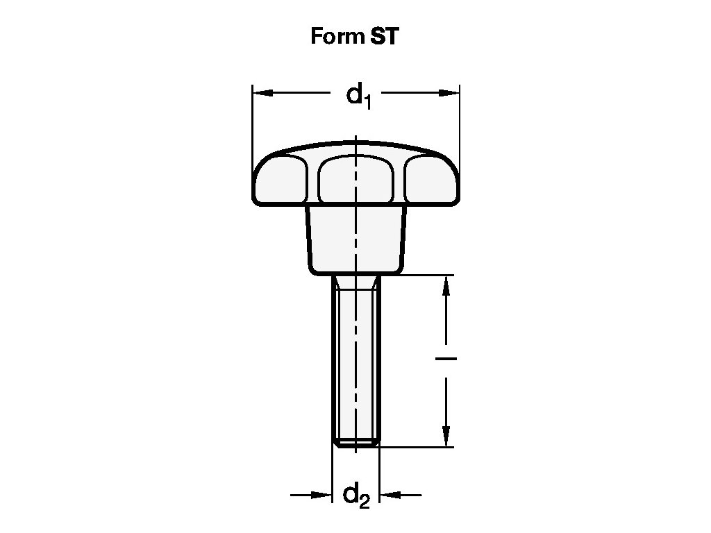 ak sa má upínanie uskutočniť na kontaktnej ploche hviezdicového gombíka, uprednostňujú sa tvary TE a SG - konštrukcia a rozmery hviezdicových gombíkov: DIN 6336 KT - plast (KT)Dodatočné parametre