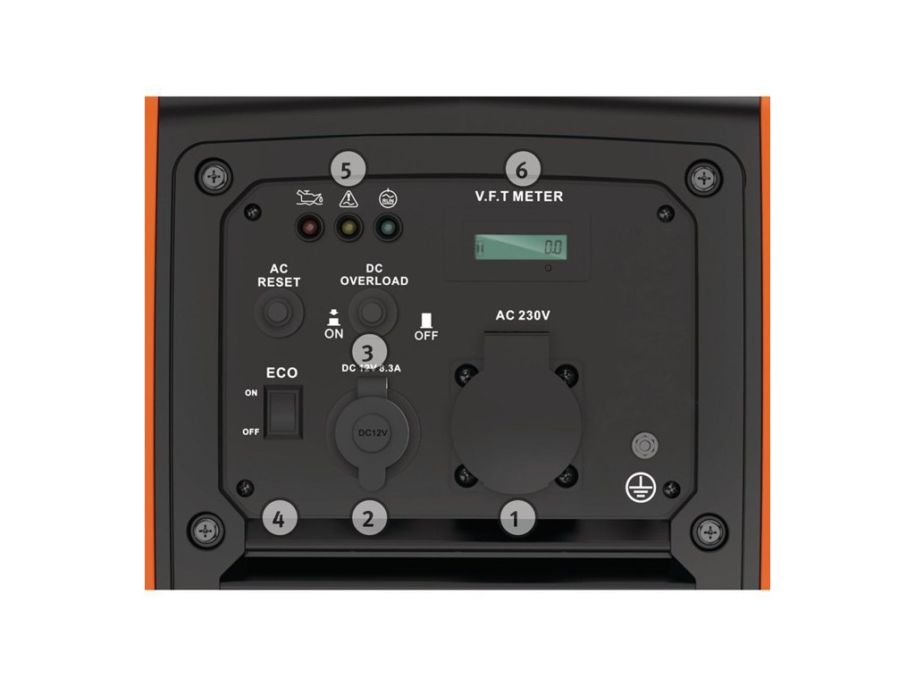 dodáva energiu s čistou sínusoidou pre zariadenia s citlivou elektronikou, ako sú napríklad počítače - konštantný výkon - tichá prevádzka - plynulá regulácia otáčok v závislosti od výkonu - režim ECO - svetelné indikátory nízkeho stavu oleja alebo poruchy - tlmivkaDodatočné parametre