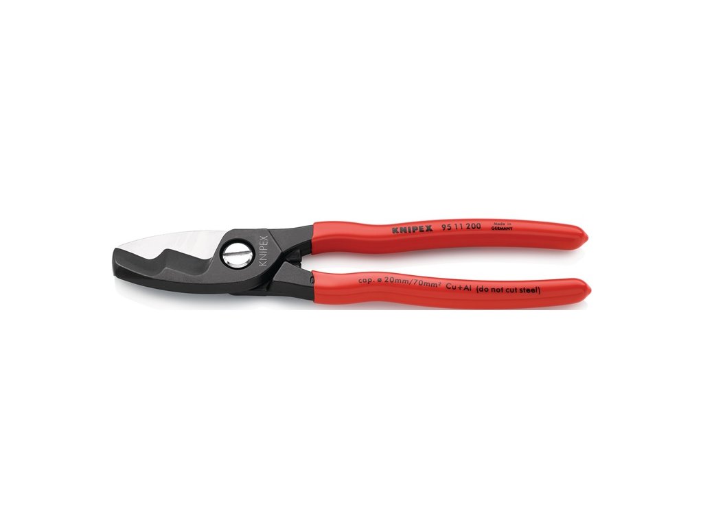S dvojitým rezným ostrím - Na medené/hliníkové káble, plné aj lankové - Kalené rezné ostrie s presným brúsením - S predrezom a dorezom (1. a 2. reznou hranou) možno káble do Ø 20 mm rezať jednou rukou - nie je vhodné na oceľové drôty a tvrdé ťahané medené vodiče - ochrana proti upnutiu - špeciálna nástrojová oceľ v špeciálnej kvalite, kovaná, kalená v olejiNástroj je leštený