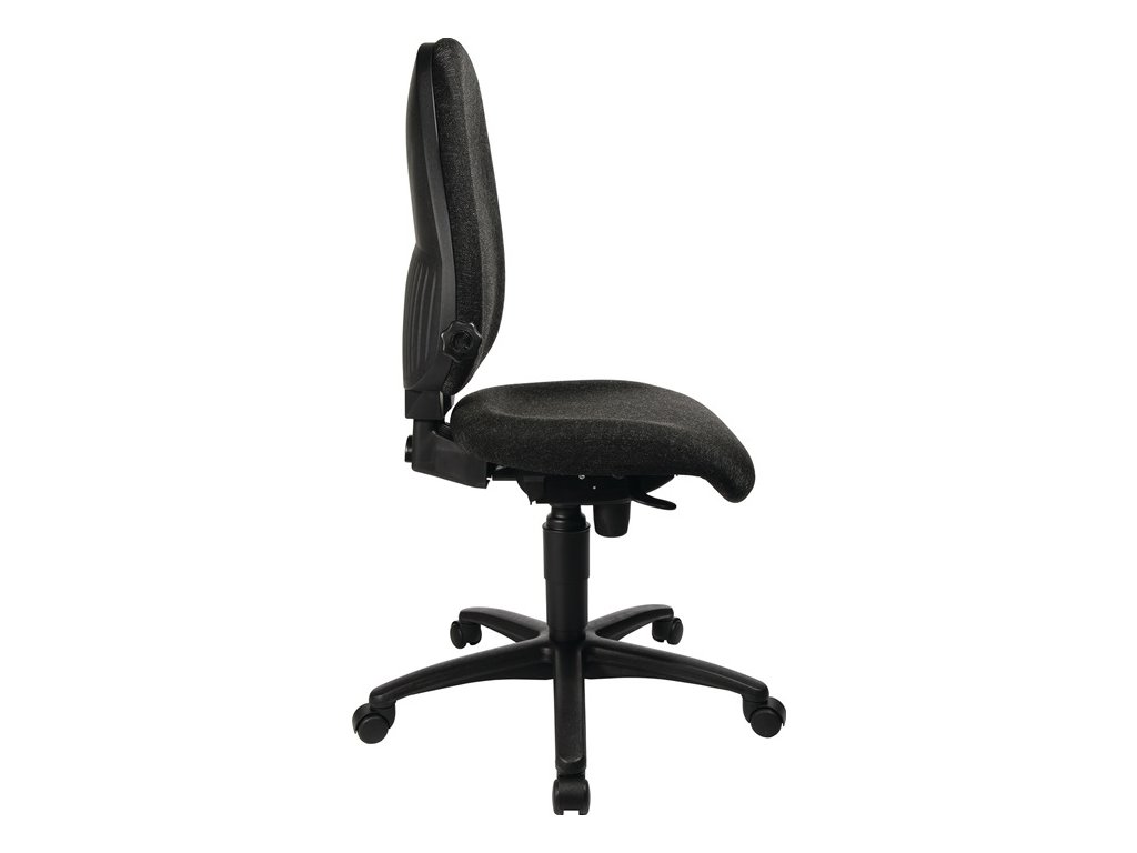 S bodovým synchronizovaným mechanizmom (bez podrúčok) - na prevažne sedavú prácu - robustná polyamidová základňa v čiernej farbe - individuálne nastaviteľná podľa telesnej hmotnosti a uzamykateľná - pohodlné sedadlo s medzistavcovými platničkami na optimálnu oporu v oblasti panvy - výškovo nastaviteľné operadlo s integrovanou bedrovou opierkou - plynulé nastavenie výšky sedadla - poťah 100 % polypropylén - plocha sedadla š 480 x d 480 mm - výška operadla 550 mm - kolieska na mäkké podlahy - dodávaná v demonteDodatočné parametre