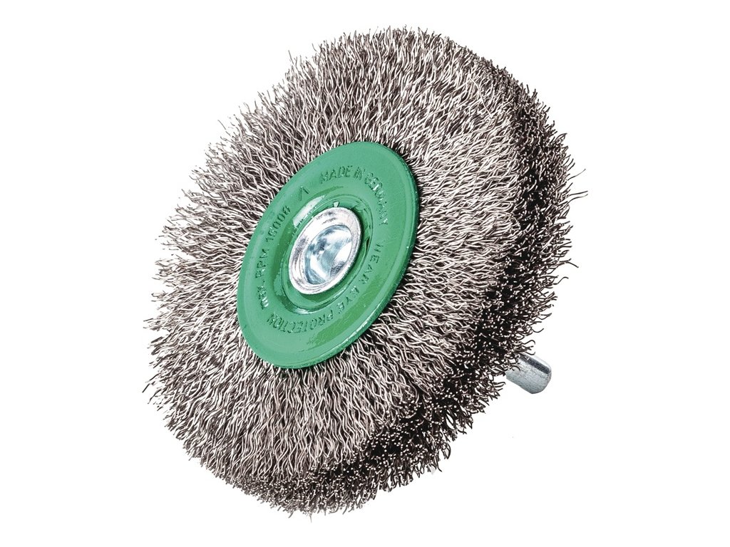 vlnitý drôt - univerzálny a flexibilný na odstraňovanie hrdze, farby, nečistôt, na ľahké odstraňovanie otrepov - kefy z nehrdzavejúcej ocele sú vhodné aj na odstraňovanie temperových farieb vo zvaroch z nehrdzavejúcej ocele - hriadeľ Ø 6 mmDodatočné parametre