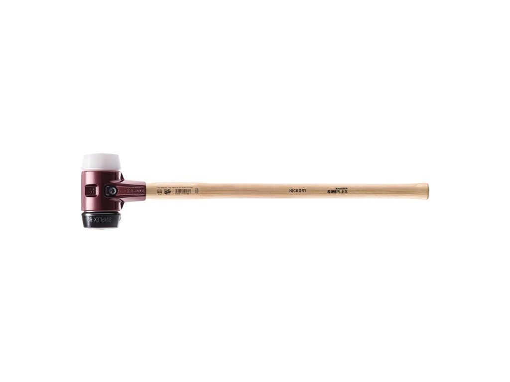 2-dielne upínacie puzdro z kujnej liatiny - úderové doštičky a rukoväť Simplex sa dajú ľahko vymeniť povolením alebo utiahnutím upínacej skrutky so šesťhrannou hlavicou - každý s 1 úderovou doštičkou z gumovej zmesi, čiernej stredne tvrdej a superplastickej bielej stredne tvrdej