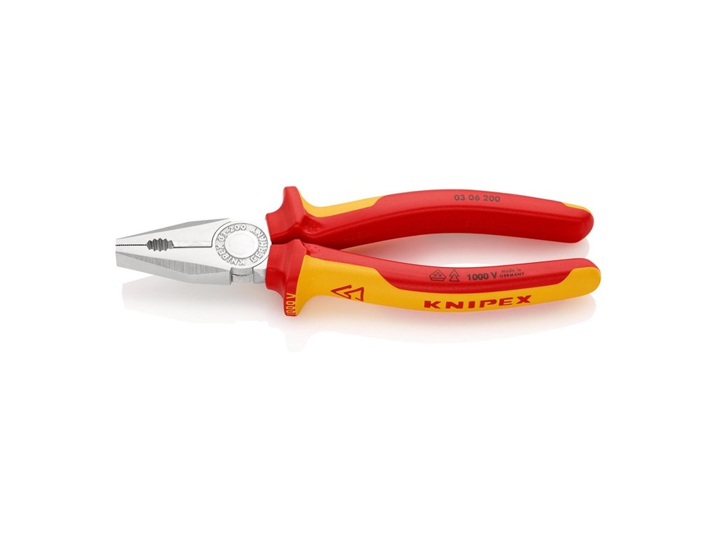 VDE izolácia do 1000 V - vyrobené podľa DIN EN/IEC 60900, kusovo testované - zóny uchopenia pre plochý a okrúhly materiál - dlhé rezné hrany pre hrubšie káble - rezné hrany dodatočne indukčne kalené, tvrdosť rezných hrán cca. 60 HRC - špeciálna nástrojová oceľ, kovaná, viacstupňovo kalená v olejiChrómované kliešte