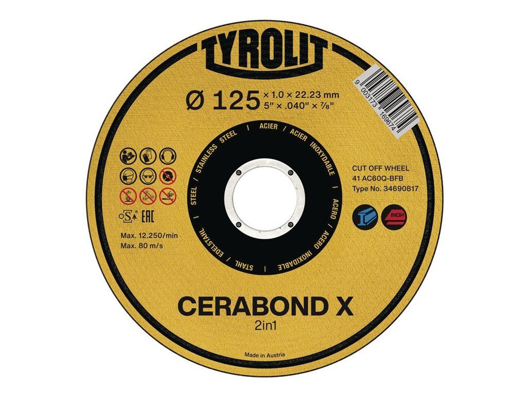 Kotúč rezný TYROLIT 34690817 D125x1,0 mm rovný