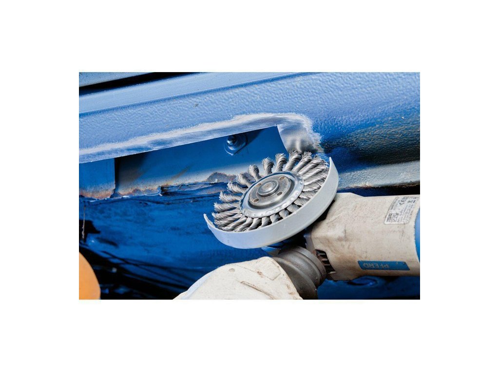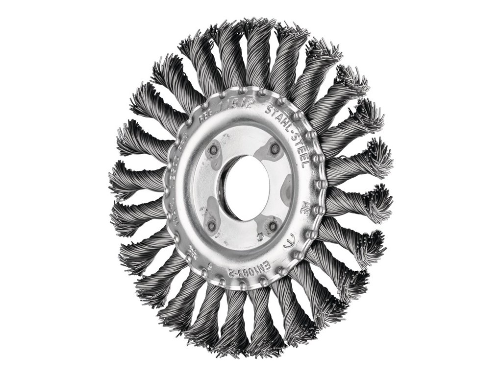 uzlový drôt - agresívna kefa - vhodná na náročné kefárske práce v kovových konštrukciách, ako je odstraňovanie vodného kameňa, odhrdzavovanie, odihlovanie, čistenie zvarových spojov a odstraňovanie zvyškov lepidla - otvor 22,2 mm ØDodatočné parametre