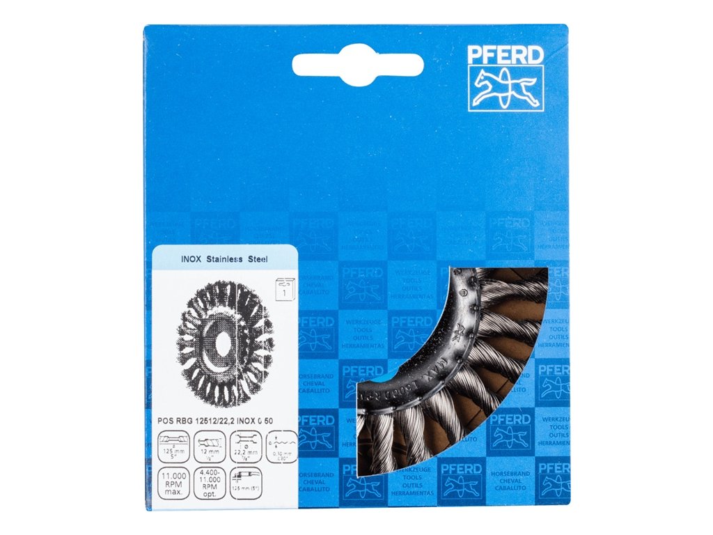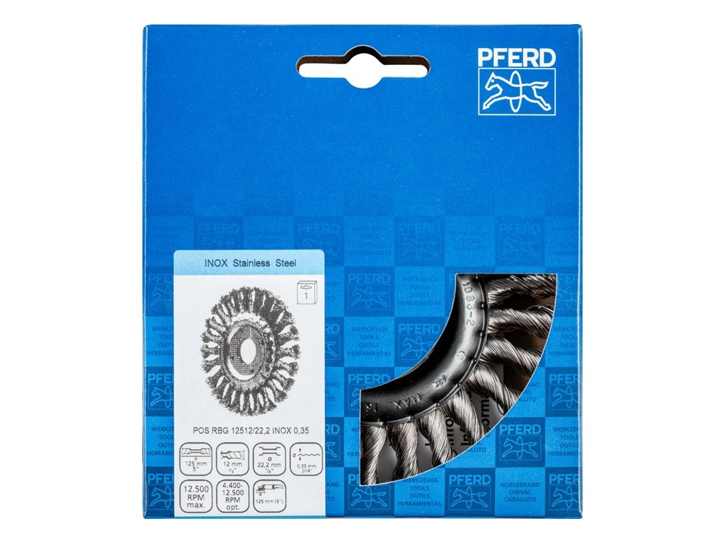S cieľom splniť špeciálne požiadavky na spracovanie nehrdzavejúcej ocele (INOX) používa spoločnosť PFERD na všetky kefy INOX drôt kvality 1.4310 (V2A). Praktické skúsenosti z priemyselného prostredia potvrdzujú, že má veľmi dobrú odolnosť proti korózii s optimálnou životnosťou. Všetky kefy PFERD s vláknami INOX sú označené modrou farbou a sú vhodné na použitie na všetky nehrdzavejúce ocele (INOX) - napríklad V4A. Drôt triedy 1.4310 má pri pracovnom kalení tendenciu vykazovať feromagnetické správanie, t. j. je priťahovaný magnetmi, v dôsledku zmeny mikroštruktúry spôsobenej deformáciou, napr. počas ťahania drôtu. Táto skutočnosť nemá žiadny vplyv na kvalitu a odolnosť proti korózii lišty INOX. Zachováva si svoje koróziivzdorné vlastnosti. Drôt z nehrdzavejúcej ocele (INOX) odoláva teplotám až do 450 °C. Agresívna kefa. Vhodná na náročné kefovacie práce v kovových konštrukciách, ako je odstraňovanie vodného kameňa - odhrdzavovanie - odihlovanie - čistenie zvarových švov a odstraňovanie zvyškov lepidla a zvarových výronov.Dodatočné parametre