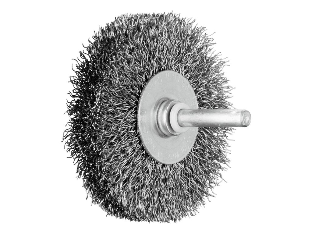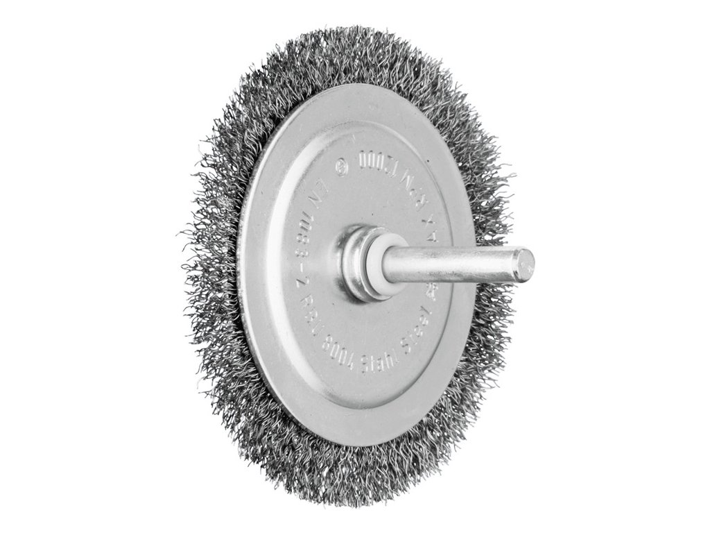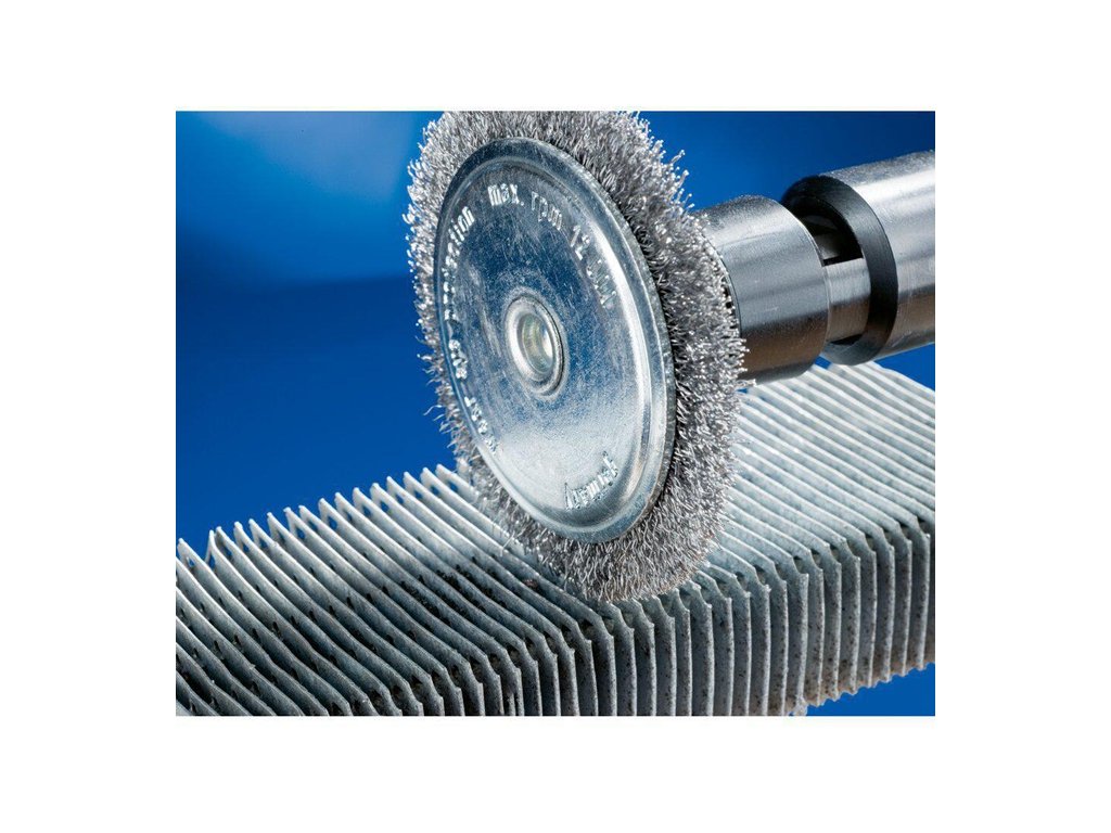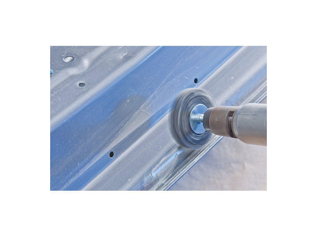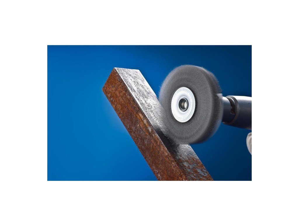 na čistenie, odhrdzavovanie, vyhladzovanie, čistenie zvarových švov, ľahké odstraňovanie otrepov a odstraňovanie korózie a náterov - materiál výplne z oceľového drôtu má vysokú pevnosť v ťahu a v ohybe na únavu - zaručuje optimálne opotrebenie drôtu a dlhú životnosť aj pri extrémnych aplikáciách kefovaniaOcelový drôt odoláva teplotám do 300 °C. Hriadeľ Ø 6 mm