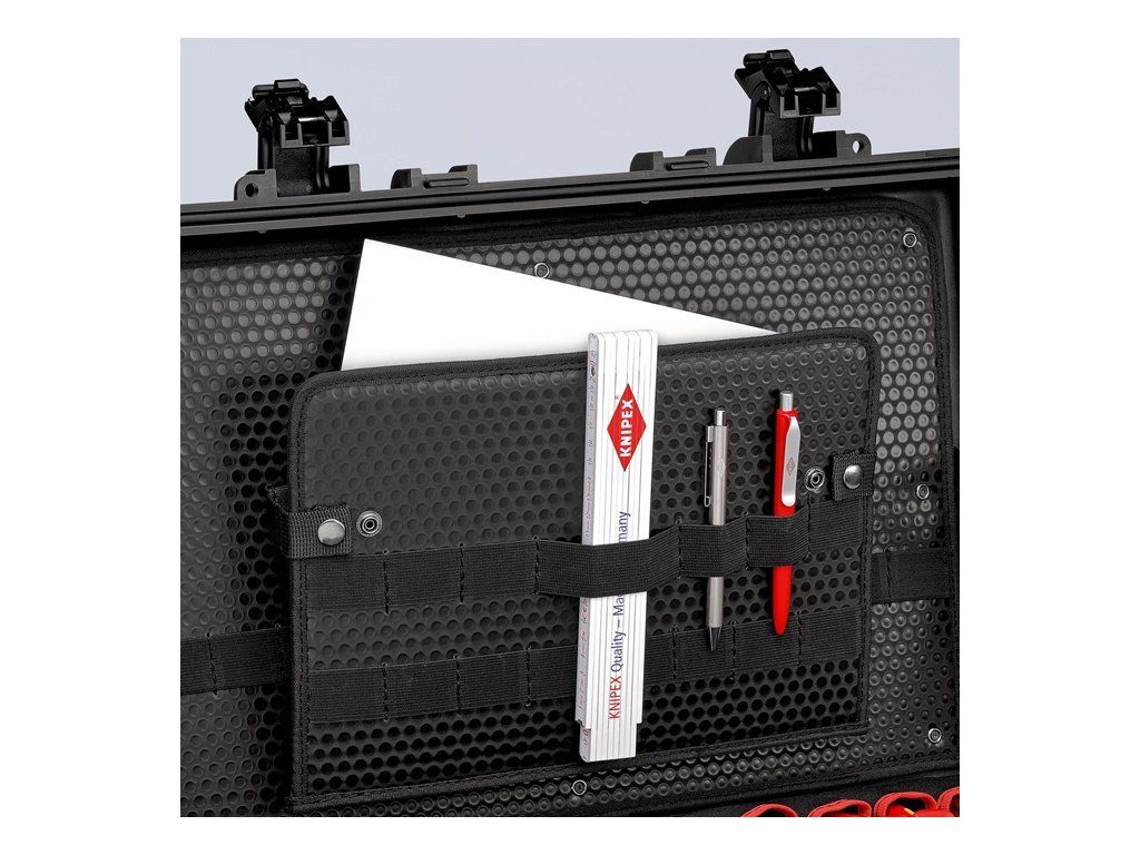 Odolný voči prachu a vode - odolný voči vzduchu - vyrobený z nárazuvzdorného polypropylénu - automatický ventil na vyrovnávanie tlaku - teplotne stabilný od - 30 °C do + 80 °C - zariadenie na visiaci zámok (nie je súčasťou dodávky) - priehradka na dokumenty - dosky na náradie Con-Pearl® s 54 vreckami na náradie a 94 pútkami na náradie - uzamykateľná základná priehradka (individuálne deliteľná pomocou hliníkového deliaceho systému) - dvojkomponentná rukoväť - integrovaný podvozok s dvoma hladkobežnými kolieskami a teleskopickou rukoväťou - objem 45 l - max. nosnosť do 35 kgDodatočné parametre