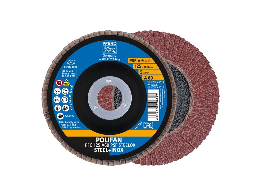 Normálny oxid hlinitý - nástroj na univerzálne úlohy brúsenia nehrdzavejúcej ocele (INOX), ocele - s vysokým rezným výkonom a dobrou životnosťou - na povrchové brúsenie a opracovanie zvarových švov - veľmi dobré výsledky brúsenia sa dosahujú aj pri nízkom prítlaku - otvor 22,23 mm ØDodatočné parametre