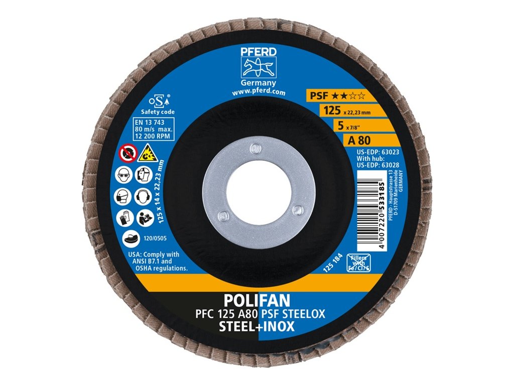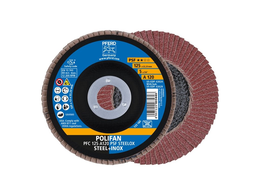 Normálny oxid hlinitý - Nástroj na univerzálne úlohy brúsenia nehrdzavejúcej ocele (INOX), ocele - s vysokým rezným výkonom a dobrou životnosťou nástroja - na povrchové brúsenie a opracovanie zvarových švov - veľmi dobré výsledky brúsenia sa dosahujú aj pri nízkom prítlaku - otvor 22,23 mm ØDodatočné parametre