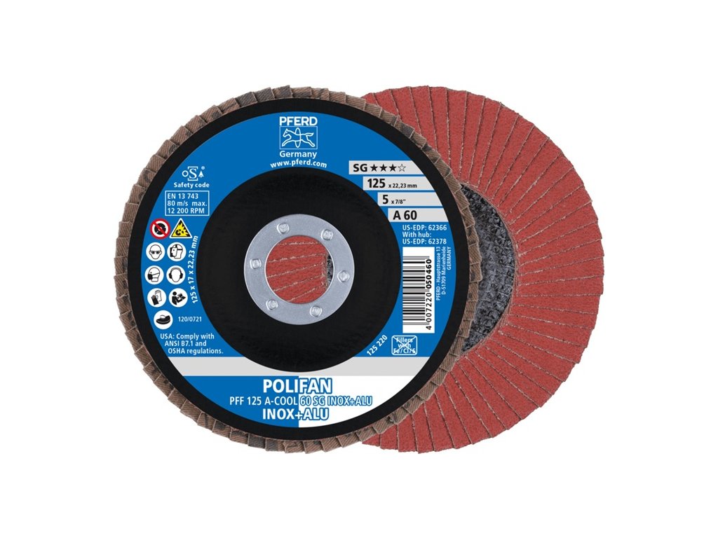 Farba: Ø 125 mm zrnitosť 60 plochá, Veľkosť: INOX/hliník Oxid hlinitý