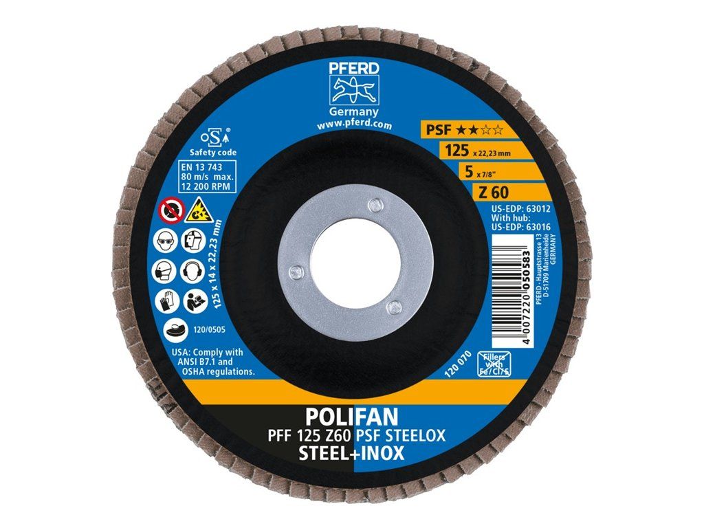 Druh produktu: Kotúč lamelový, Hlavné vlastnosti: Ø 125 mm K 60 plochý, Materiál nástroja: Nerezová oceľ (INOX) Oxid zirkoničitý Z