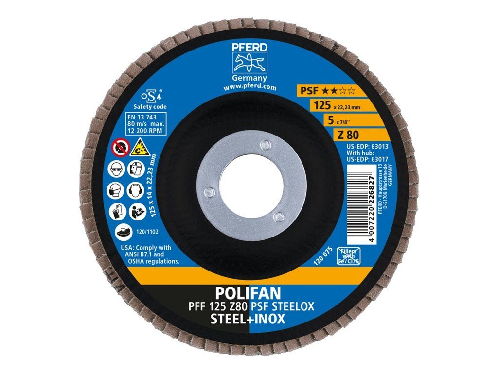 Druh produktu: Kotúč lamelový, Hlavné vlastnosti: Ø 125 mm K 80 plochý, Materiál nástroja: Nerezová oceľ (INOX) Oxid zirkoničitý Z