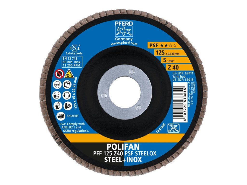 Druh produktu: Kotúč lamelový, Hlavné vlastnosti: Ø 125 mm K 40 plochý, Materiál nástroja: Nerezová oceľ (INOX) Oxid zirkoničitý Z