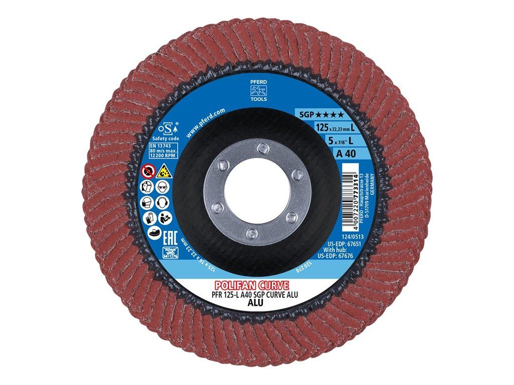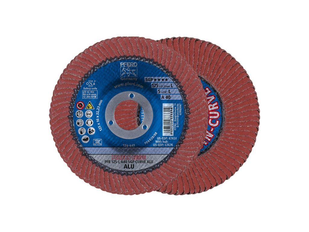 Lamelový kotúč POLIFAN® A SGP CURVE ALU korund A-COOL verzia L PFERD TOOLS
