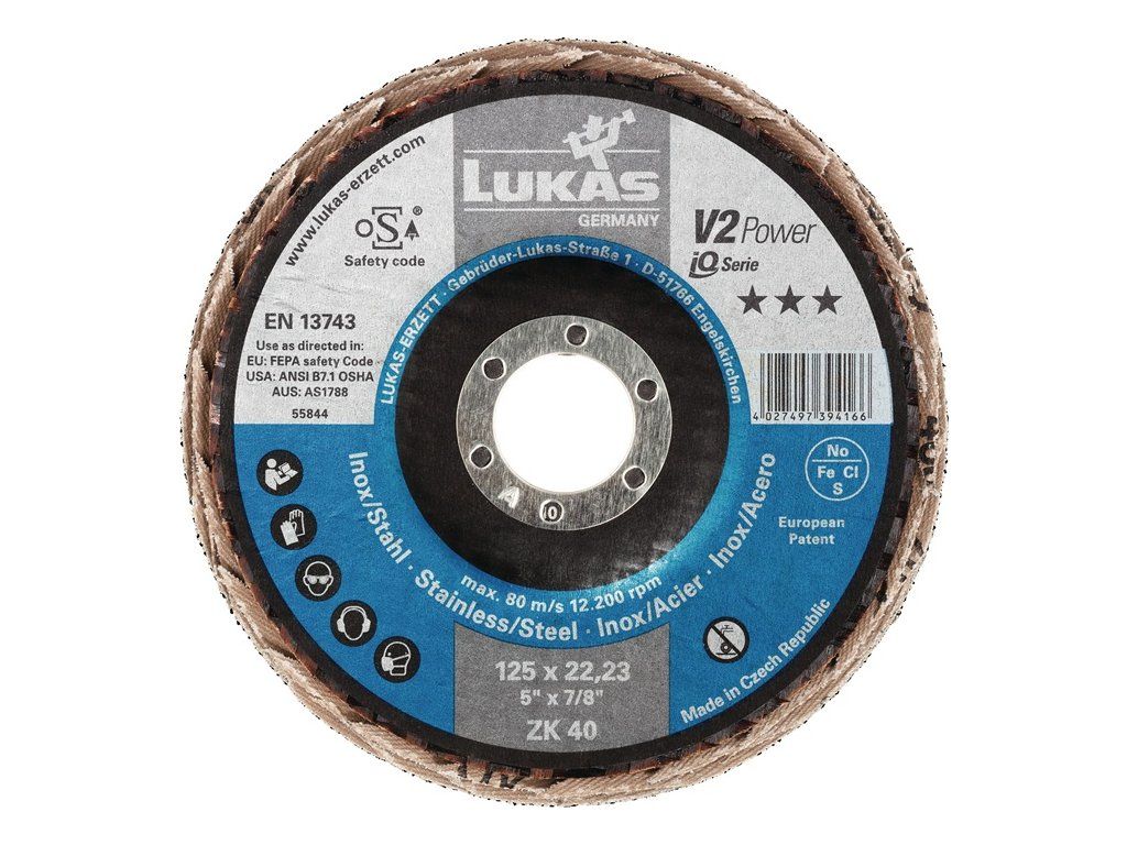 Lamelový kotúč V2 POWER ZK Ø 125 mm zrnitosť 40 plochá oceľ zirkón korund 10 LUKAS