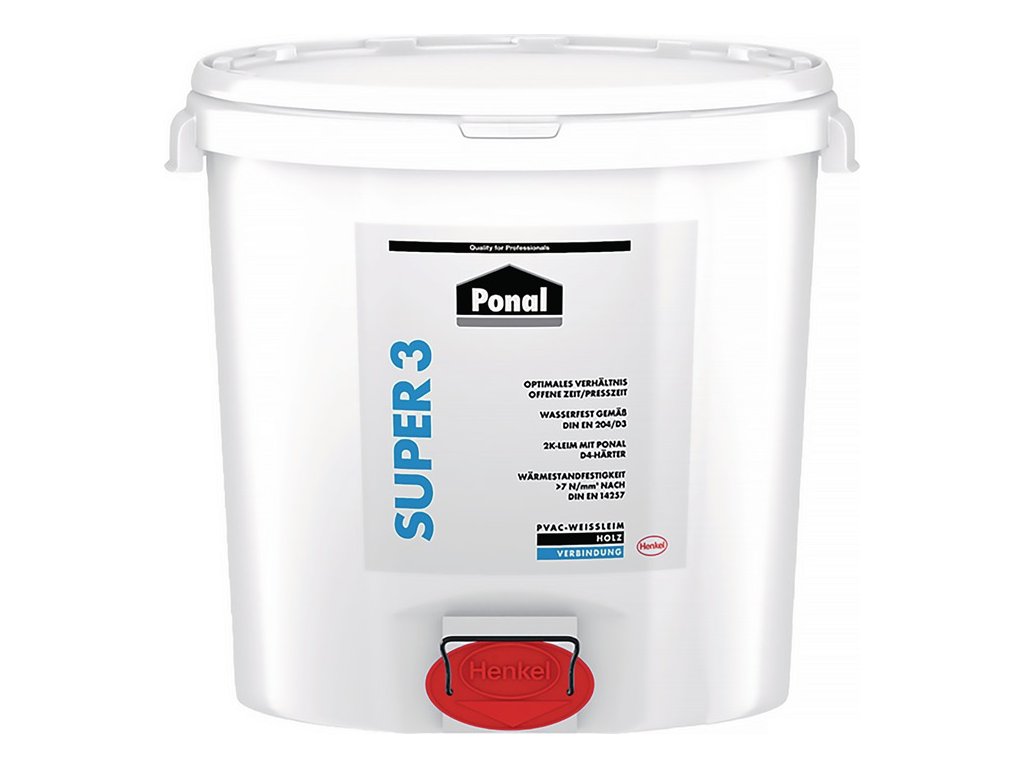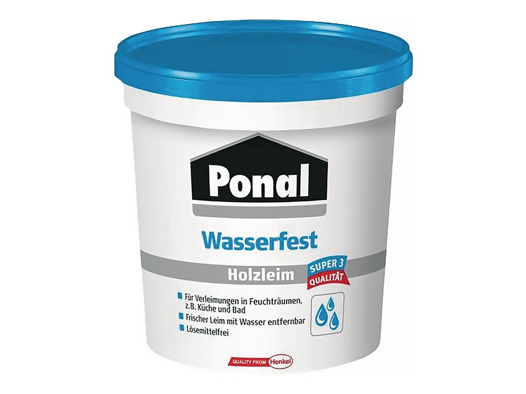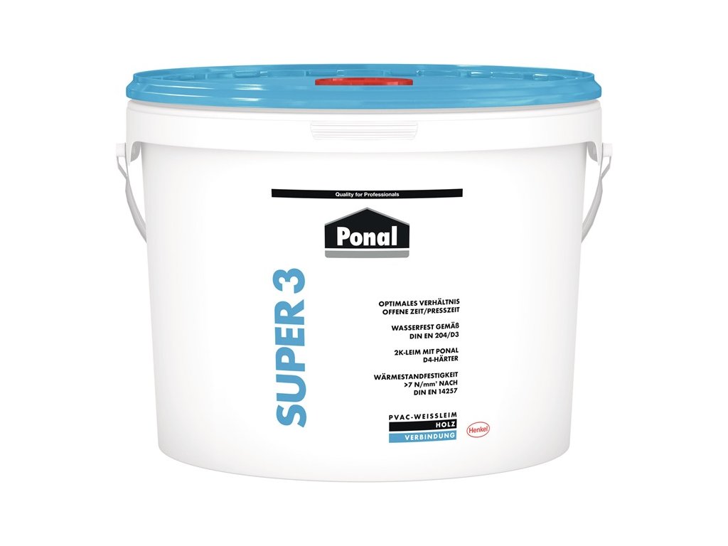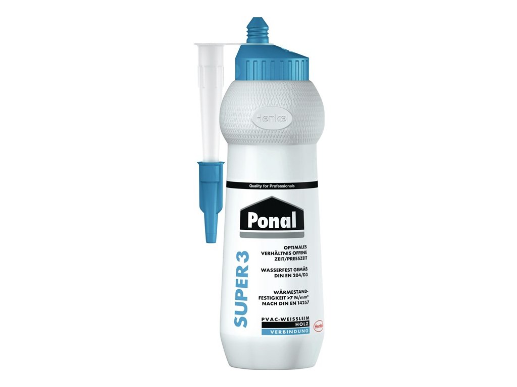 Biele lepidlo na podmienečne vodotesné lepenie podľa DIN EN 204 D3 - ideálne na vodotesné montážne, spojovacie a plošné lepenie v interiéri - lepenie okien a dverí, HPL na materiály na báze dreva, na výrobu dreveného nábytku, montážne lepenie (napr. hmoždinky, pero a drážka) - na lepenie materiálov na báze dreva.(napr. hmoždinky, pero a drážka, zápustka a čap), lepenie spojov (masívne drevo, lemovanie hrán, lemovanie hrán), kladenie hotových parkiet - bezfarebné po priebežnom vytvrdnutí - bez rozpúšťadiel - možno opakovane vytvrdzovať podľa DIN EN 204/D4 s tvrdidlom Ponal D4 Art.č. 4000 353 779Dodatočné parametre