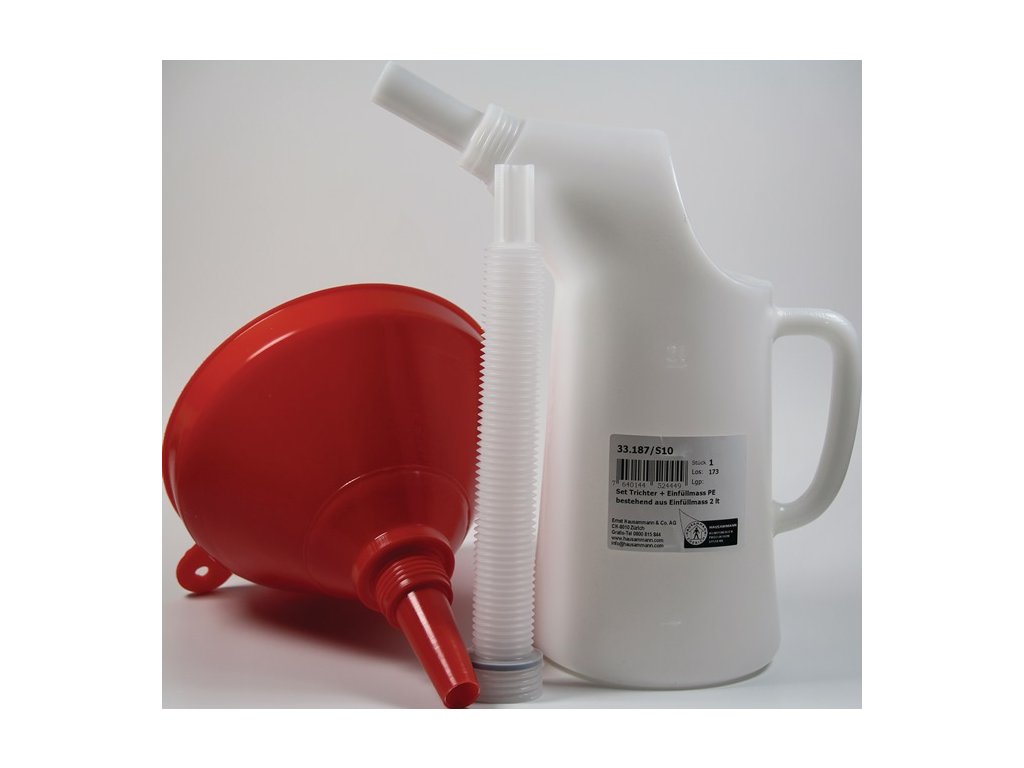 Obsah súpravy: 2 l plnička, 200 mm lievik, 250 mm flexibilná hadica (vhodná pre oba predmety) - Vhodné pre: Nafta, vykurovací olej, hydraulický olej, syntetické a minerálne oleje, alkohol, voda, ľahké destilátyDodatočné parametre