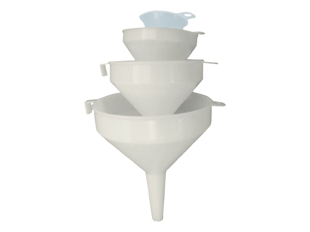 PE - biely - 4-dielny - vysokokvalitný, robustný lievik pre laboratóriá a priemysel - odolný voči olejom, kyselinám a benzínuDodatočné parametre