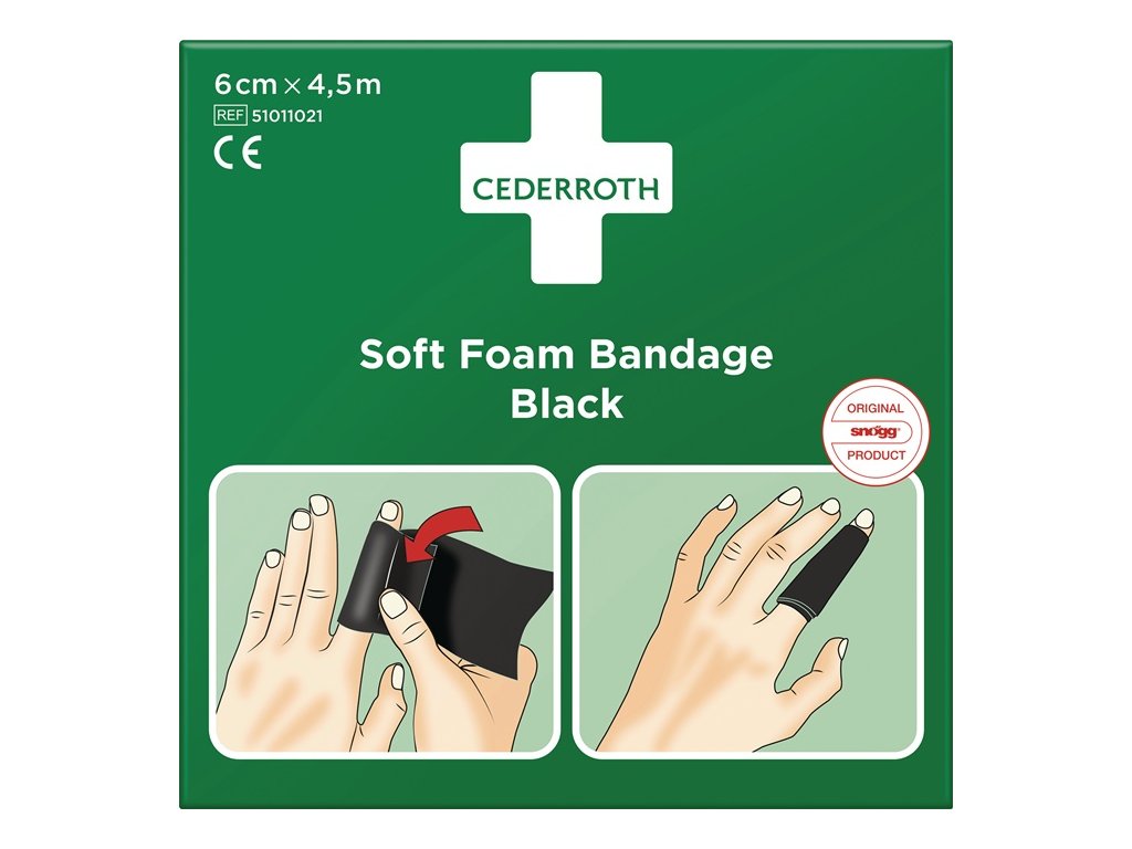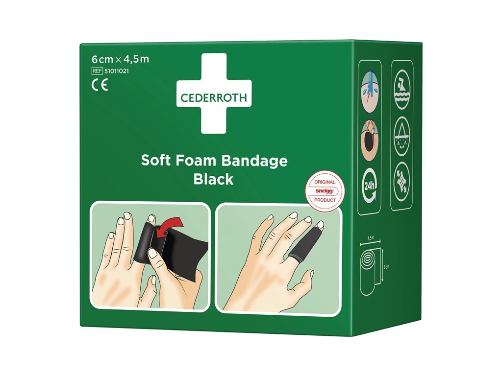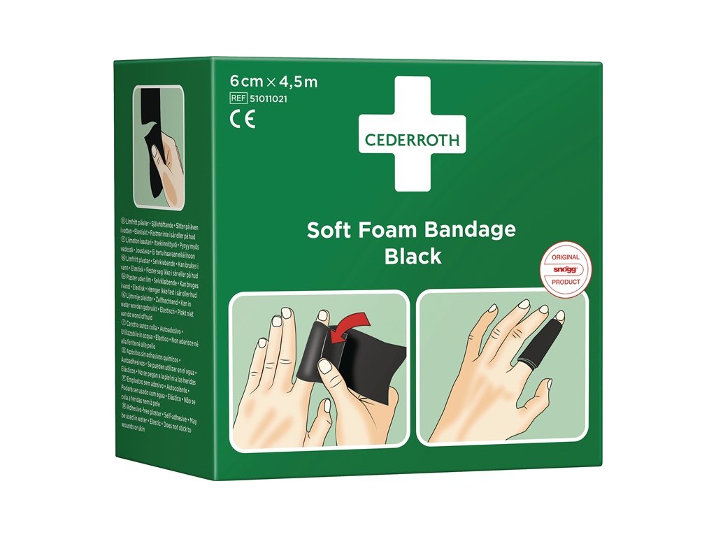 je obzvlášť vhodný ako rýchly obväz na rezné rany - obväz je samolepiaci, môže sa používať za všetkých podmienok (mokrý, suchý, teplý, studený) a nelepí sa na pokožku ani vlasy - môže sa strihať alebo odtrhnúť z rolky - 4,5 m rolky (4000 386 493 čierna) sa hodia do dávkovača na sadru Plus (4706 000 235 a dávkovača na mäkkú penu (4000 386 585)Dodatočné parametre