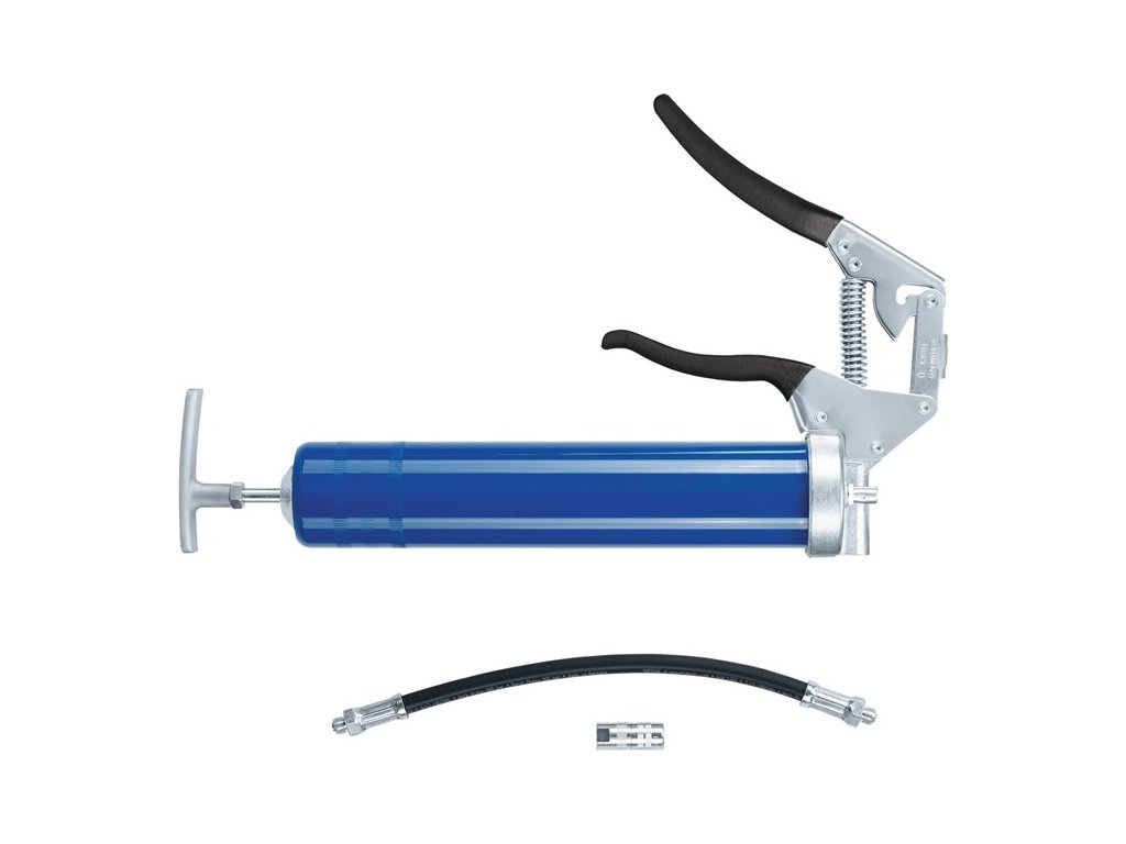 modrá s prípojkou M 10 x 1 - s plniacou vsuvkou - hydraulická tryska a pancierová hadica - od veľkoobjemovej dodávky tuku až po vysokotlakovú - možno prepínať pomocou rukoväte - pre 400 g kartuše - DIN 1284 - plnička tuku alebo sypkého tukuDodatočné parametre