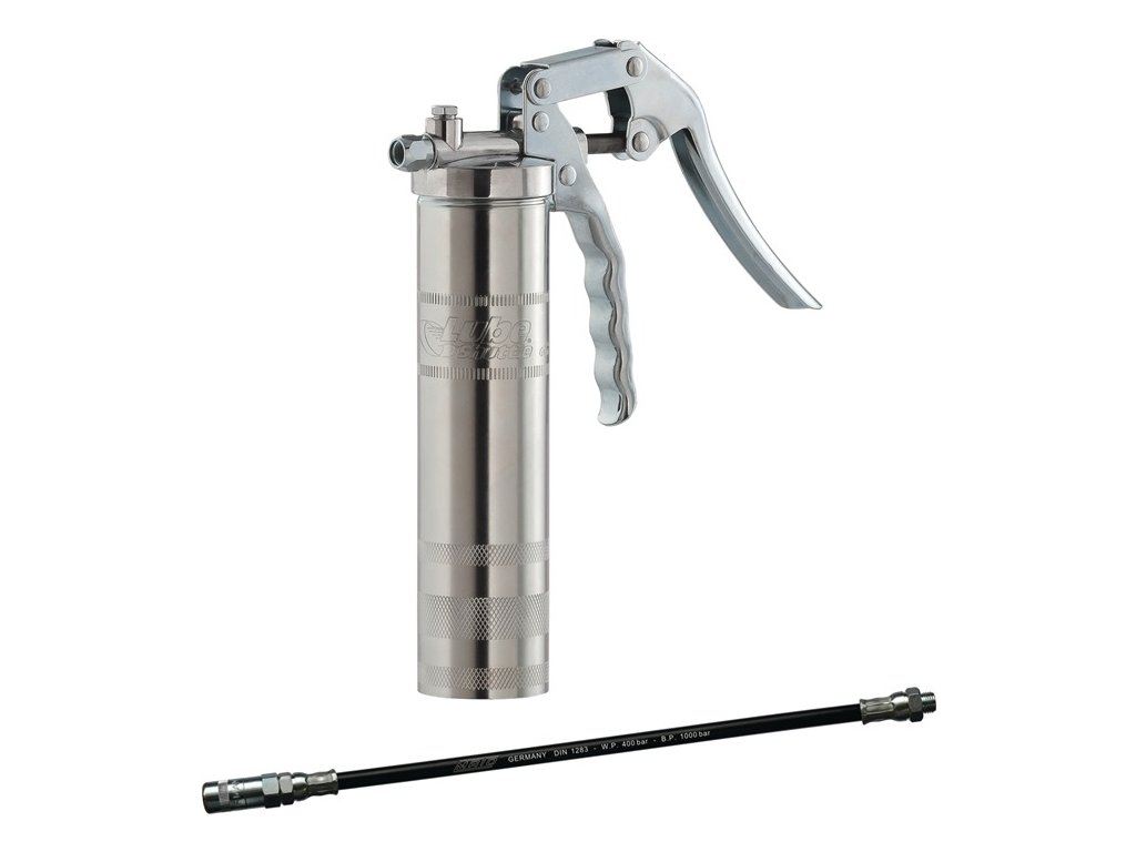 pre 400 g skrutkovaciu kartušu Lube-Shuttle® Art.Č. 4000 356 161 - s nádobou na mazivo z pozinkovanej ocele - ergonomicky tvarovaný pákový mechanizmus - balené v samostatnom kartóne - otváranie kazety bez použitia náradia - jednoduché, rýchle a absolútne čisté vkladanie a vyberanie kazety s mazivom, bez nutnosti otvárania lisu - permanentné sledovanie stavu naplnenia a typu maziva zvonku - optimálne vyprázdňovanie zvyškových kaziet - nie je potrebné odvzdušňovanie - s 300 mm vysokotlakovou plastovou hadicou PH-30C (viacvrstvová, tlak pri roztrhnutí 1000 barov, Ø-9 mm) so 4-čelisťovou hydraulickou uchopovacou tryskou, pripojovací závit M10x1Dodatočné parametre